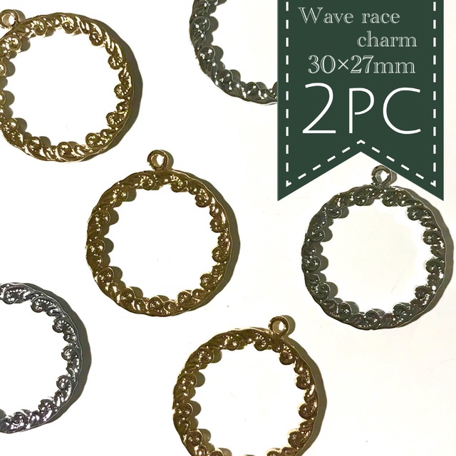 【ウェーブレースチャーム】 サイズ 30×27mm 1セット 2個入 波模様がアンティークで可愛いメタルチャームです☆ 写真では伝わりきらない繊細なデザインでとても素敵なパーツです(´▽`)サークル状なので丸カンで繋いで中にドロップチャームなんかを垂らしてみたりすると可愛いのではないでしょうか?d(゚ε゚*) 使用難易度★☆☆☆☆ ※ネックレストップやピアスなど様々なパーツとしてご使用頂けます。 (仕様詳細) 素材 合金製 【各種注意事項】 ※アレルギー対応商品であっても全ての金属アレルギーの方にアレルギーが出ない訳ではございませんのでご注意下さい。 ※海外製品が含まれており細かな傷やバリ、カケ、色ムラ等ある場合がございますので予めご了承ください。 ※細かいパーツや繊細な商品もございますのでお子様やペットがいらっしゃる方は誤飲等ご注意下さい。 ネックレス チェーン K16GP 素材 パーツ ハンドメイド 資材 高品質