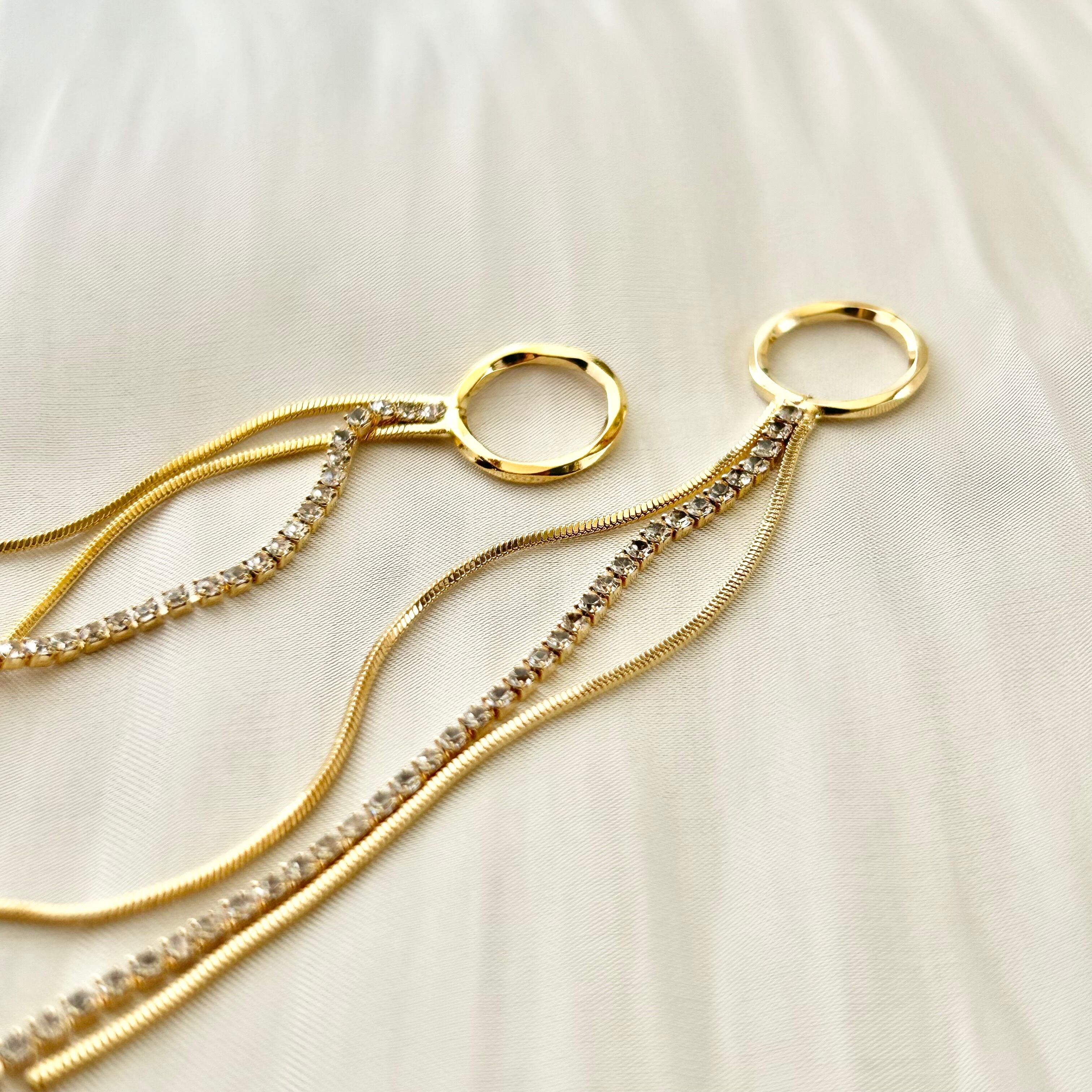 K18GP/ジルコニアツイストリングデザインチェーンタッセル X-12