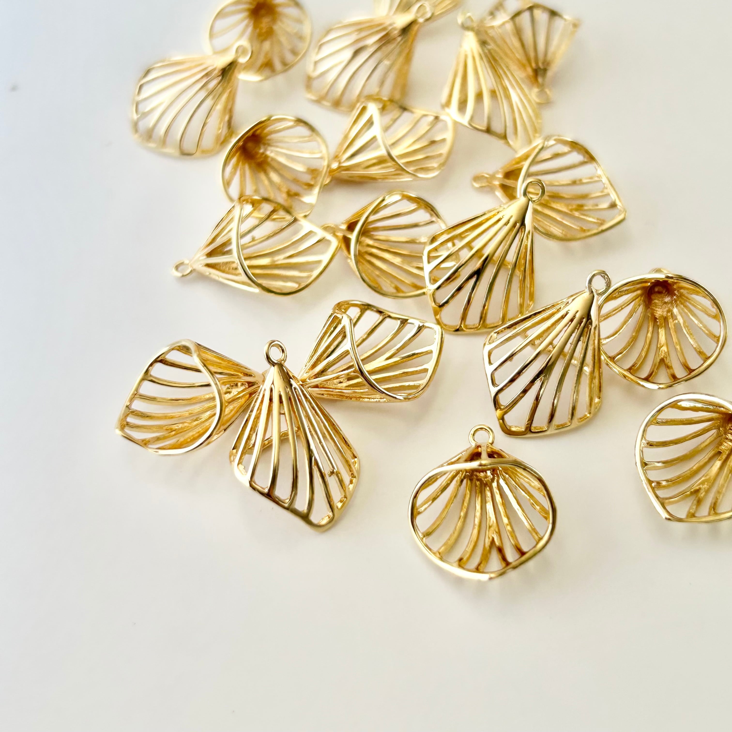 格子状のシンプルなデザインがとてもクラシカルで可愛いリーフモチーフの18金本金メッキ高品質仕様、立体チャームです