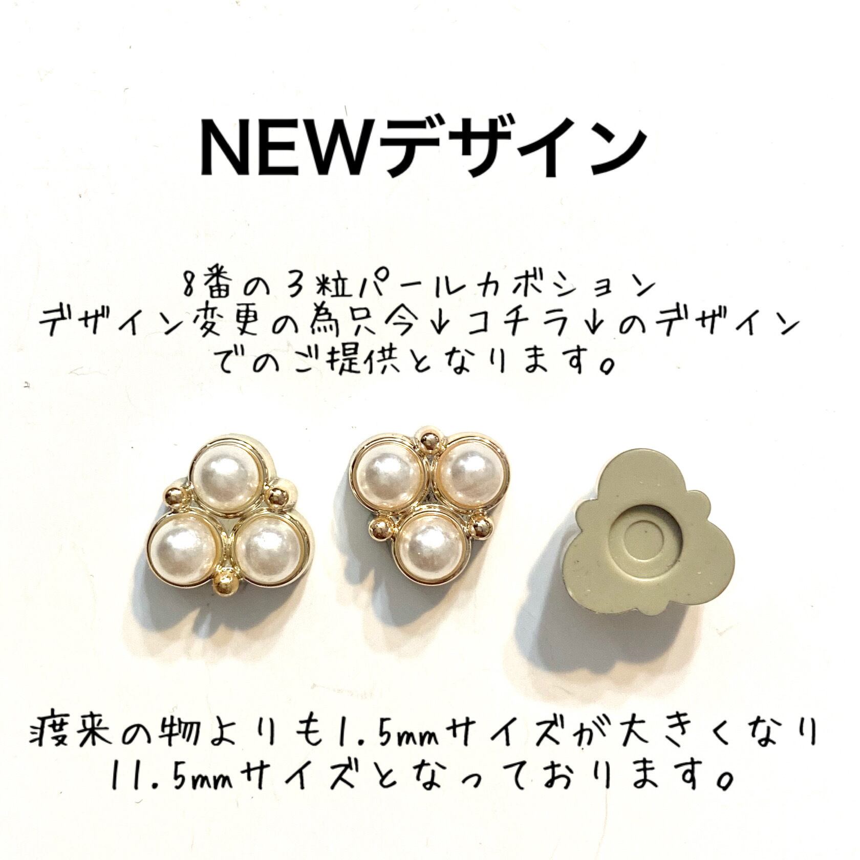 パール調やクリア系のカボションシリーズになります☆そのまま平皿ポストピアスなどに貼り付けてシンプルなピアスにしたり、他のパーツと合わせてカボションにしたりと使い方は様々です!