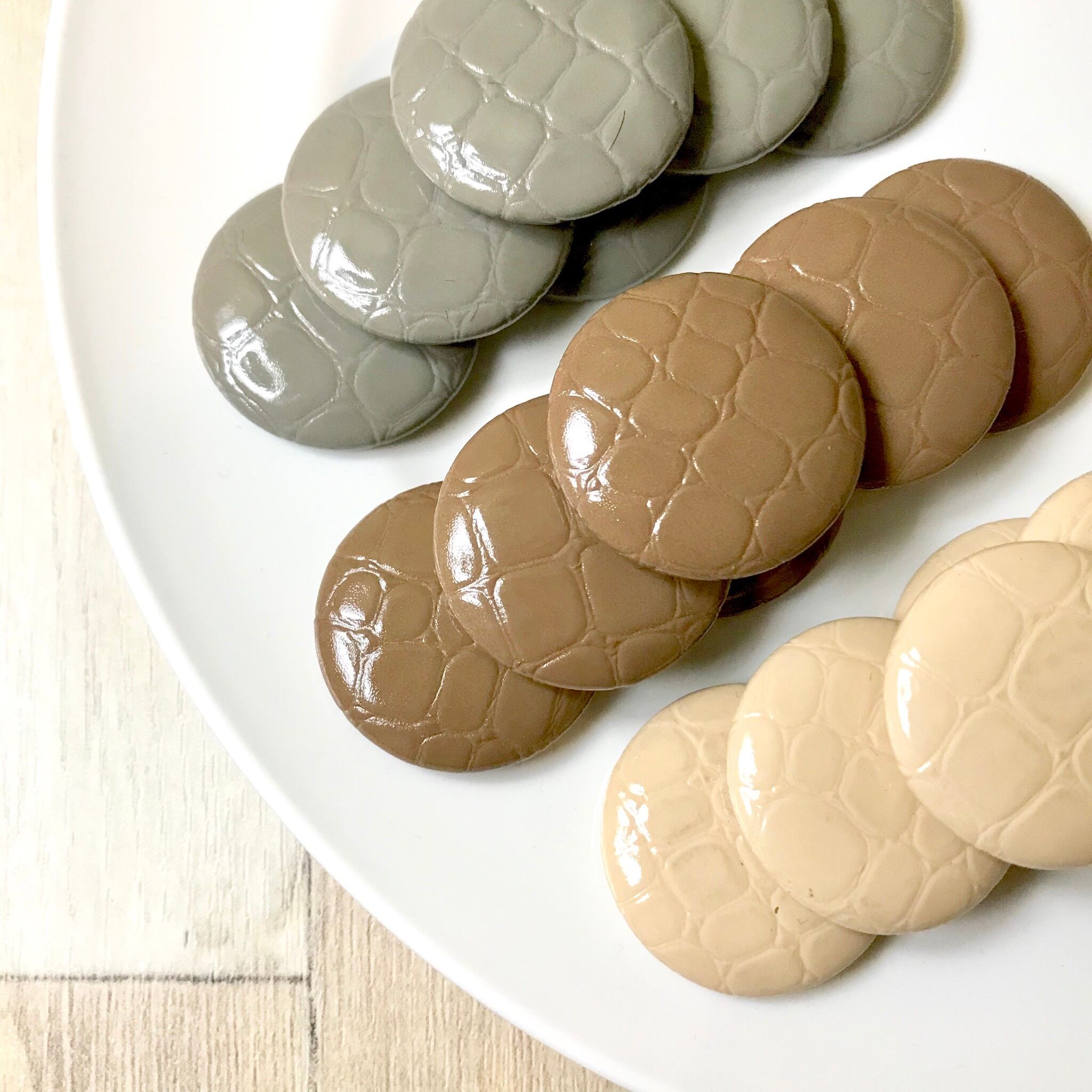 30mmのPUレザーカボションになります、背面はシルバー色のフラットなメタルになっておりますので処理せずそのまま貼り付けてご使用可能となっております!大振りのピアスはもちろん、バレッタやポニーフックなどなど様々な作品にアレンジしてご使用頂けてとても使いやすいアイテムとなっております(´▽`)