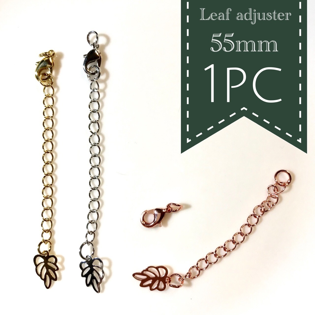 高品質リーフチャーム付アジャスターカニカン金具