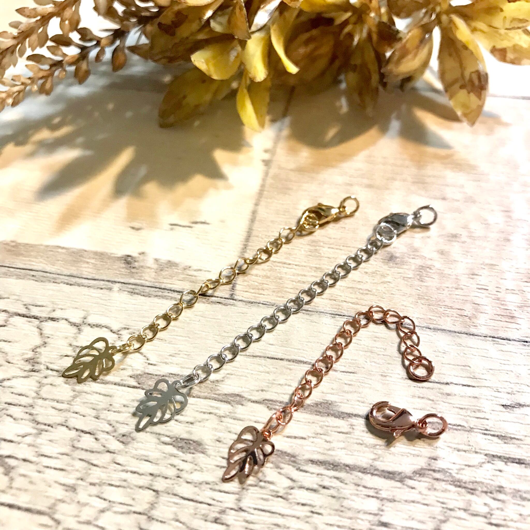 高品質なeco真鍮という真鍮のワンランク上の素材を使用し、退色性に優れた真空メッキ仕様のアジャスター+カニカンセットの金具になりますd(゚ε゚*)リーフのメタルチャームがアクセントになっております☆
