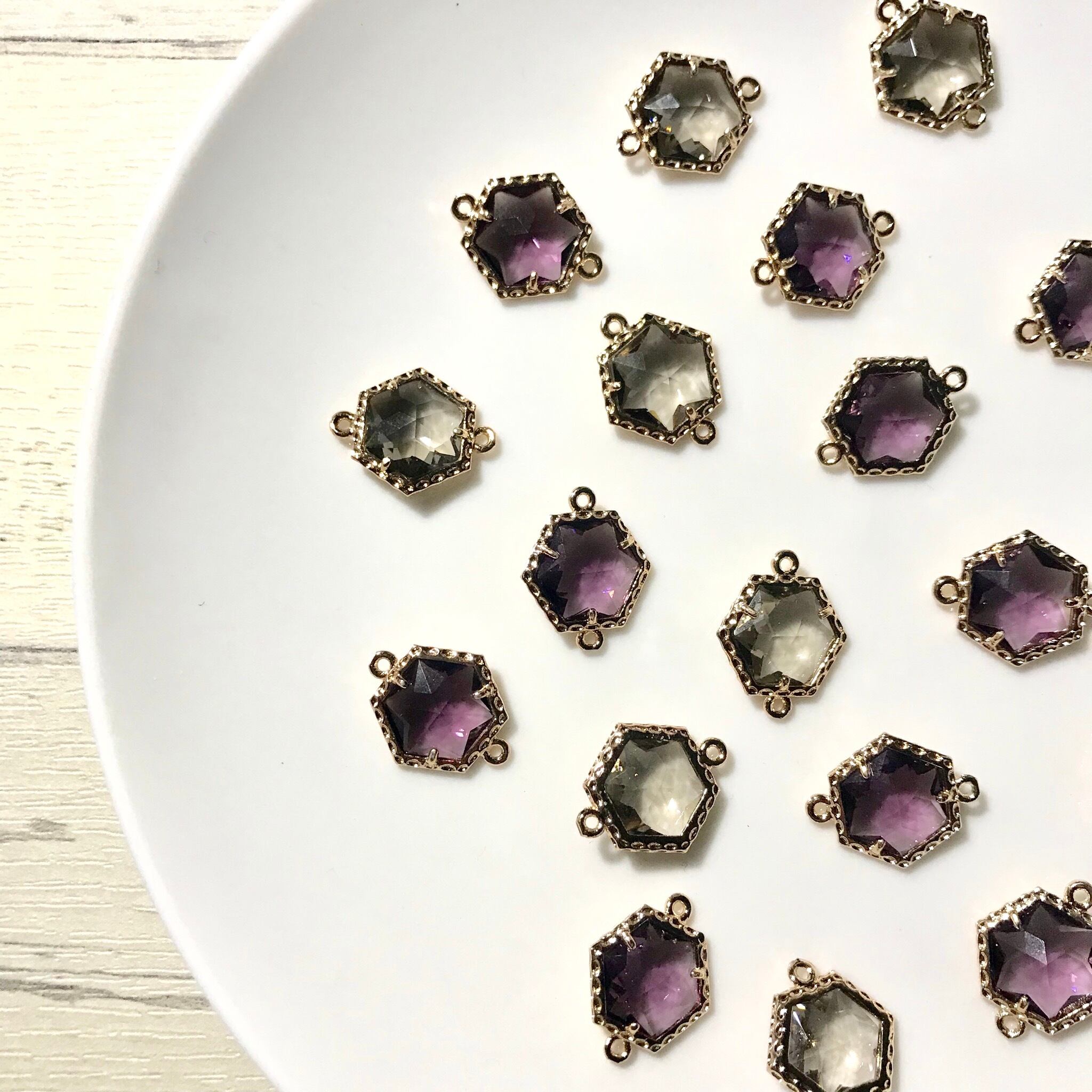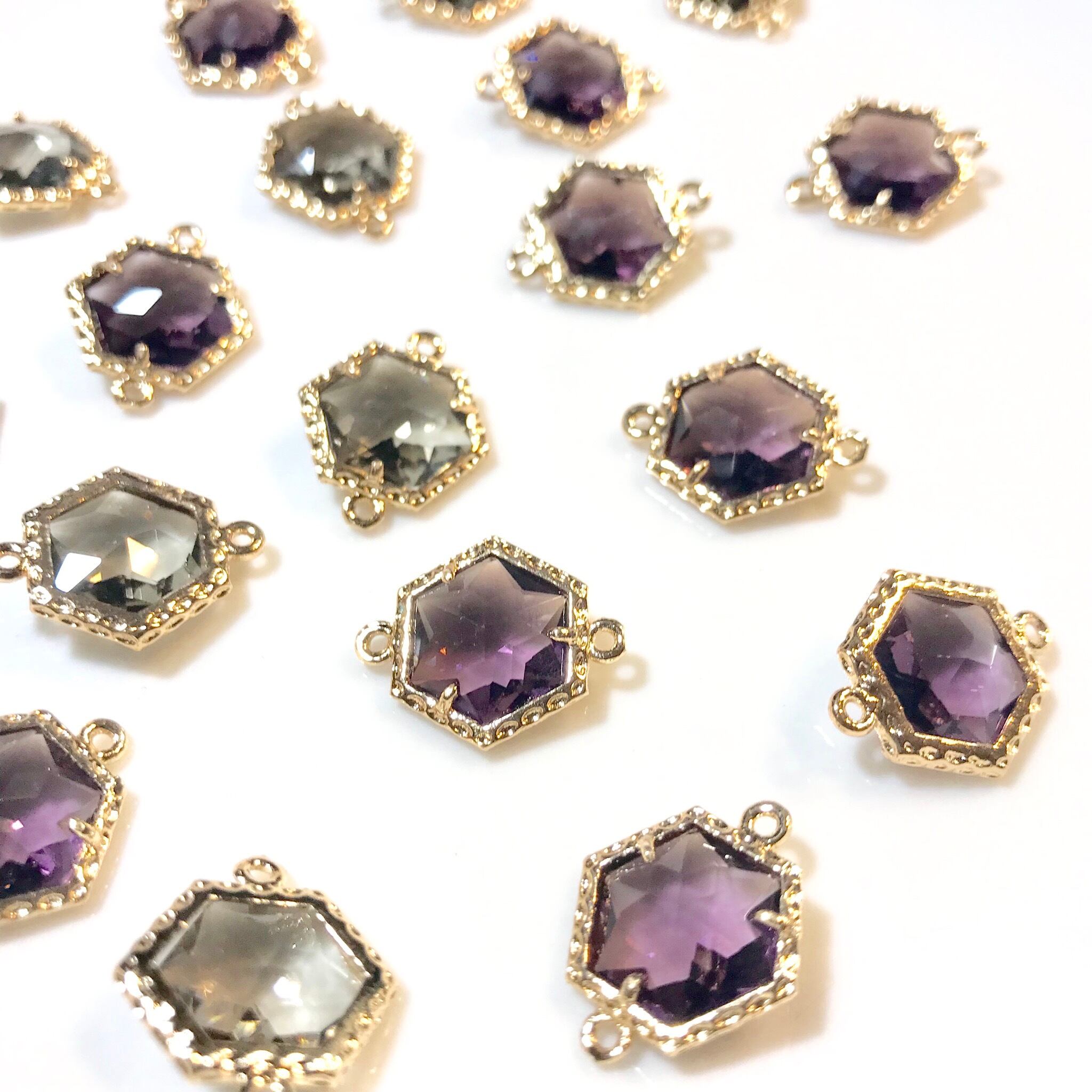 カットの美しい高品質なA級ガラスを使用したヘキサゴン型のデザインメタルコネクターです!