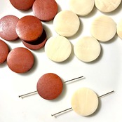 インポートのベーシックなコイン型ウッドビーズになります☆天然素材の為木目の入り方や色のムラなどあるものが含まれる場合がございますのでご了承下さい!