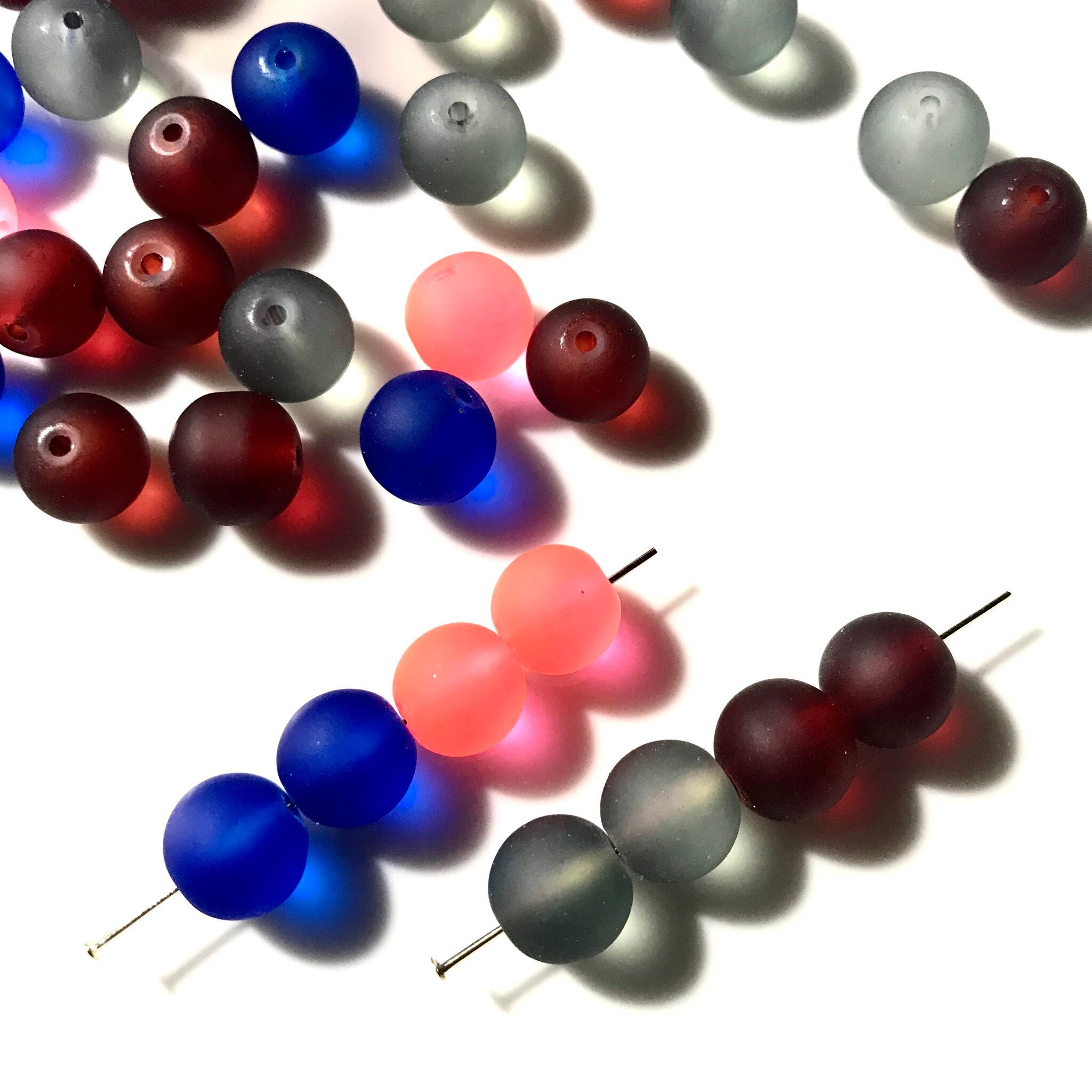アメリカインポートのフロストガラスビーズになります、フロストとは霧がかったような曇りガラスの様な加工がされたガラスの事でキラキラや透明感の全く無いよくあるガラスの特性をあえて無くした様なガラスビーズになっておりますd(゚ε゚*)
