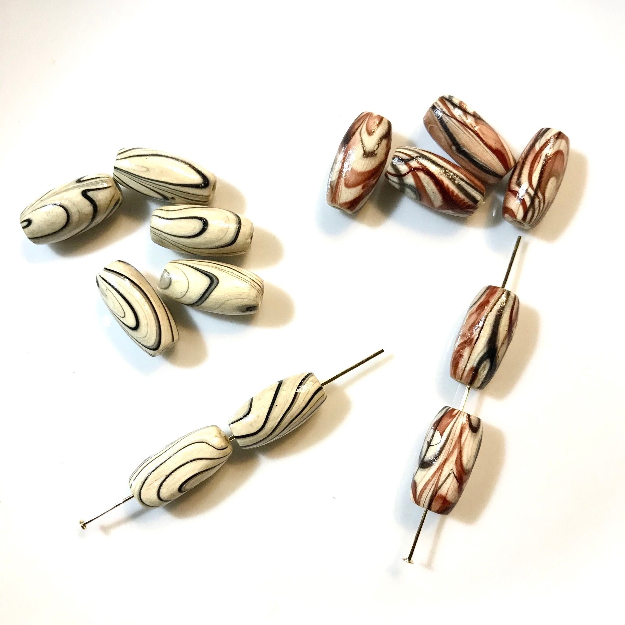 ライス型のウッドビーズにマーブル系のストライプデザイン仕様のウッドビーズになります。