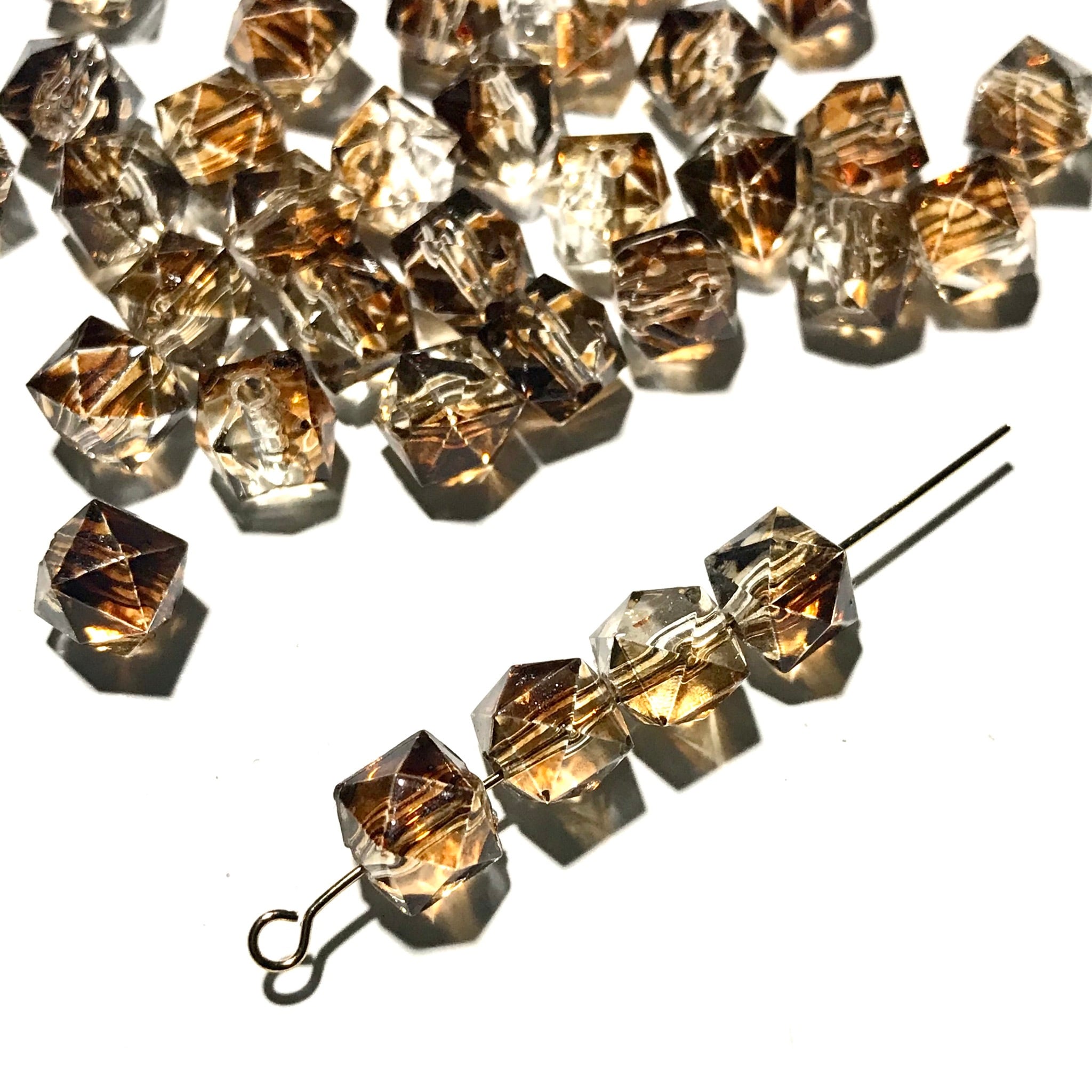 【アクリルキューブ型ブラウングラデーションビーズ】