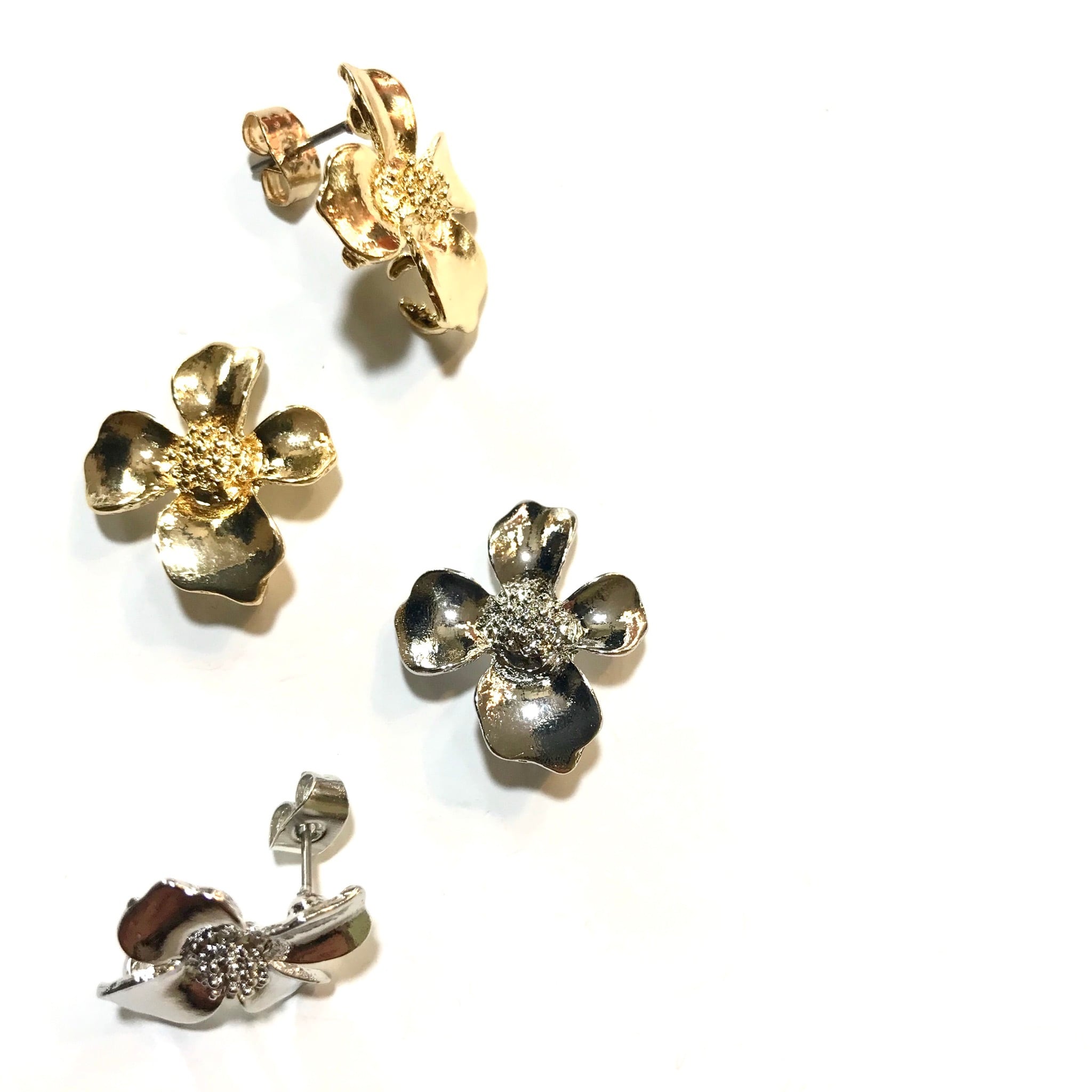 ハンドメイド パーツ 資材 アクセサリー ピアス デザイン デザインポストピアス デザポス ポストピアス デザインポスト 花 フラワー ボタニカル メタル ゴールド シルバー