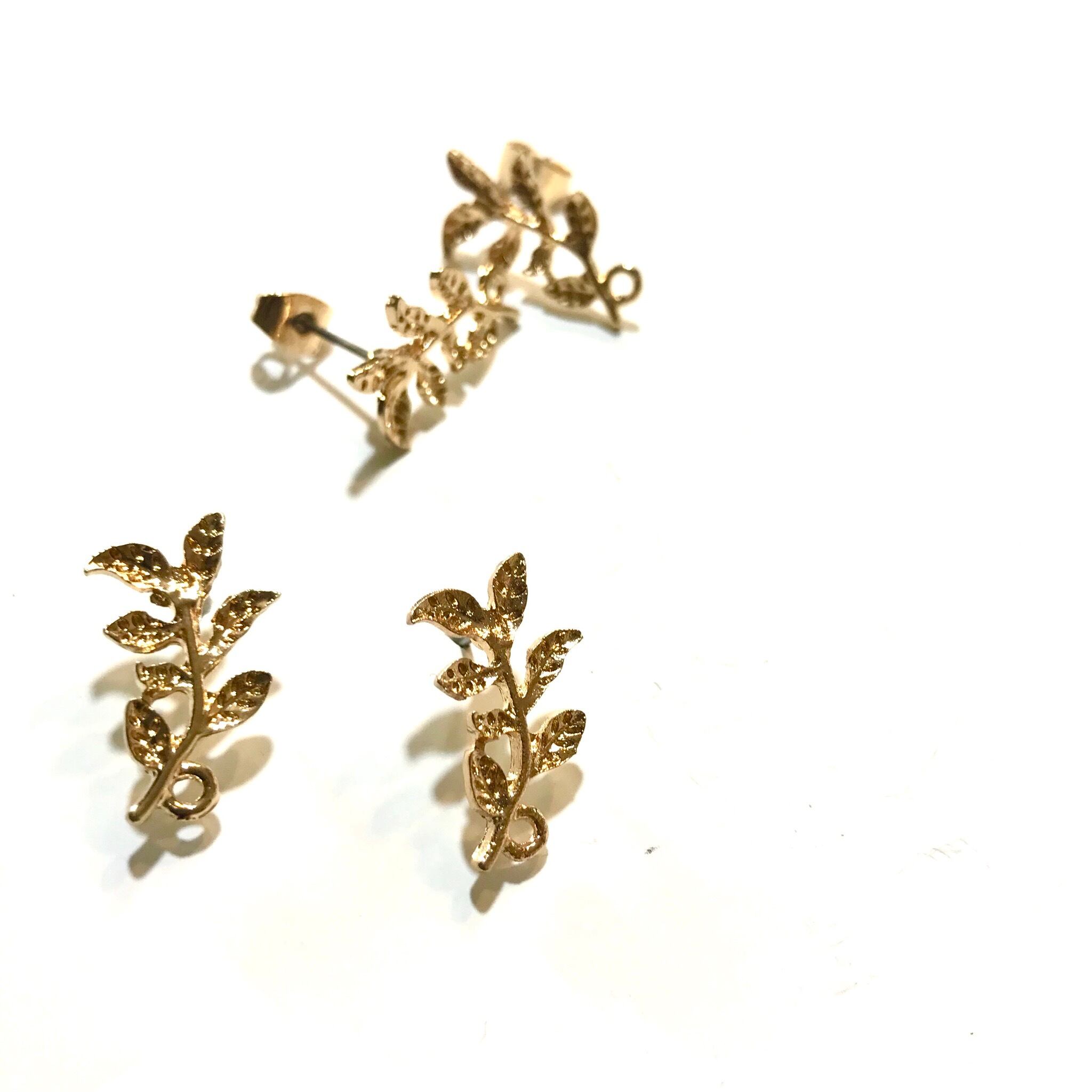 合金製のボタニカルなリーフデザインが可愛いカン付きのデザインポストピアスです。