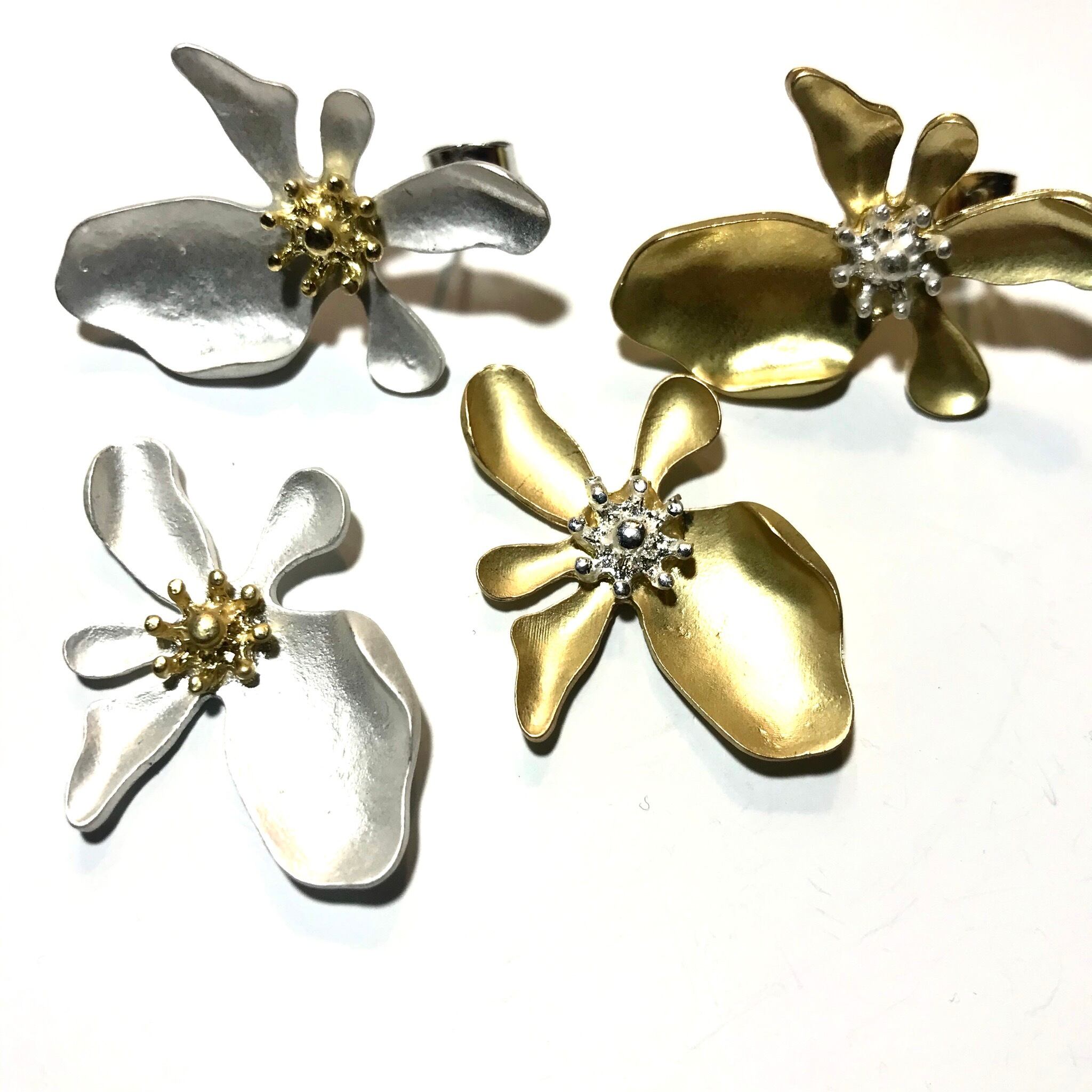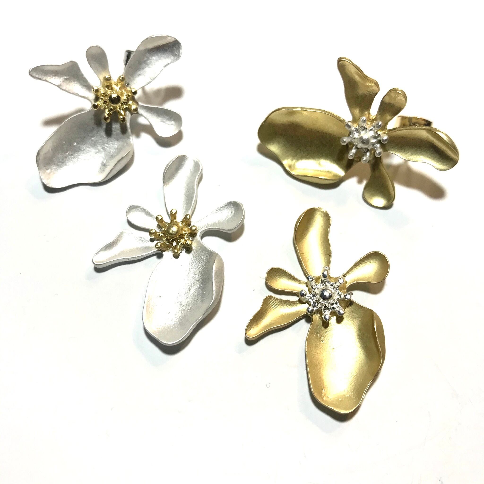 ハンドメイド パーツ 資材 アクセサリー ピアス デザイン デザインポストピアス デザポス ポストピアス デザインポスト 花 フラワー ボタニカル メタル ゴールド シルバー