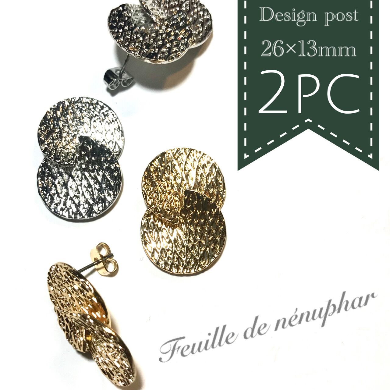 合金製の睡蓮の葉を重ね合わせた様な個性的なデザインが魅力のデザインポストピアスです。