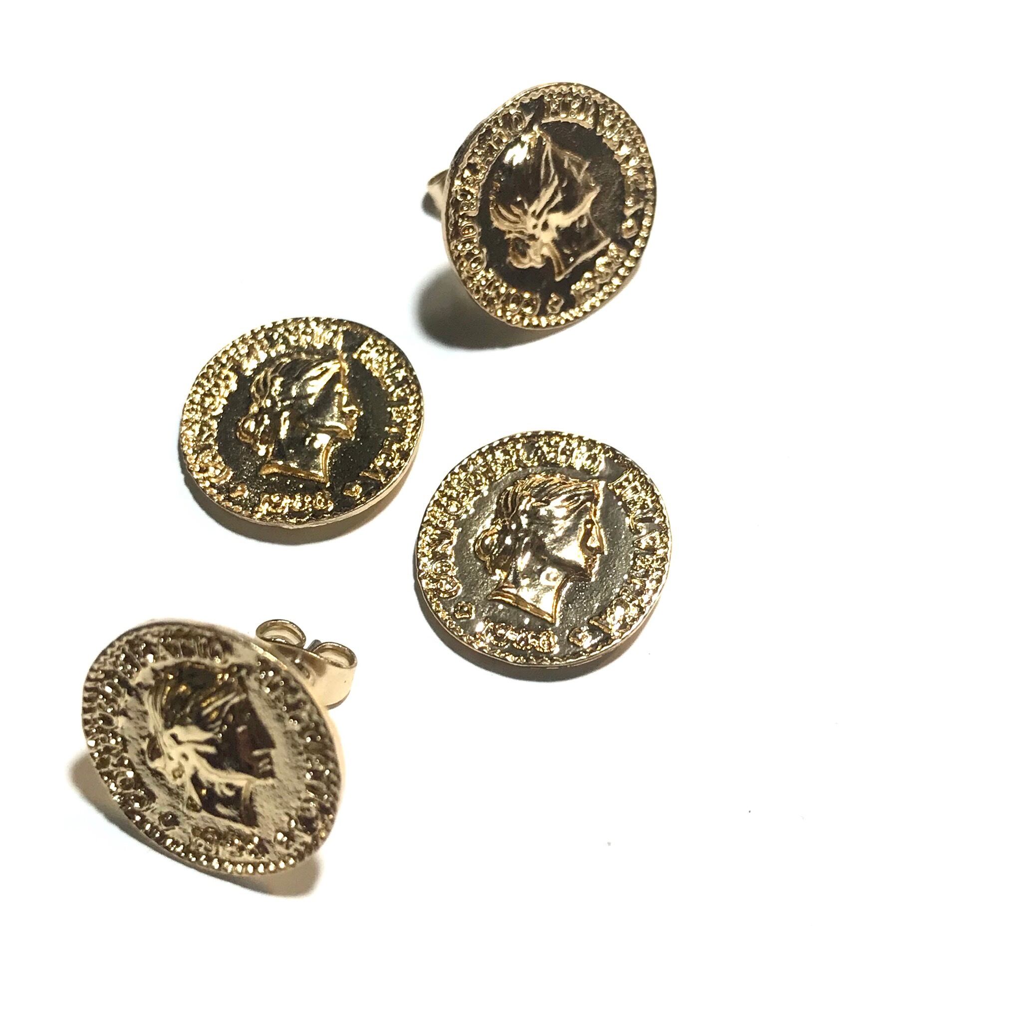 合金製のアンティークなコインのデザインが可愛いデザインポストピアスになります。