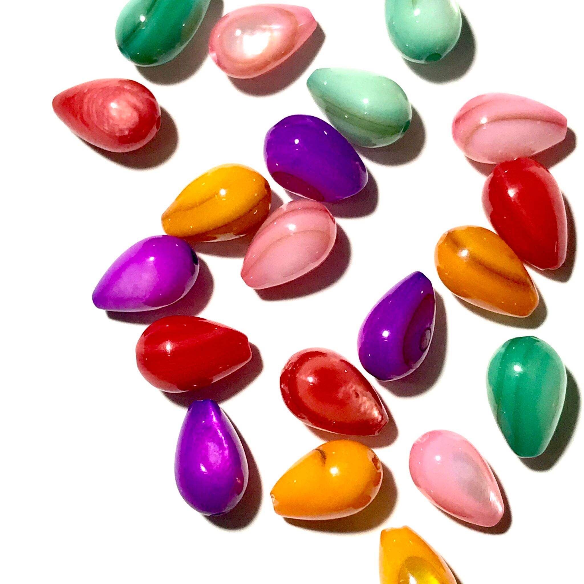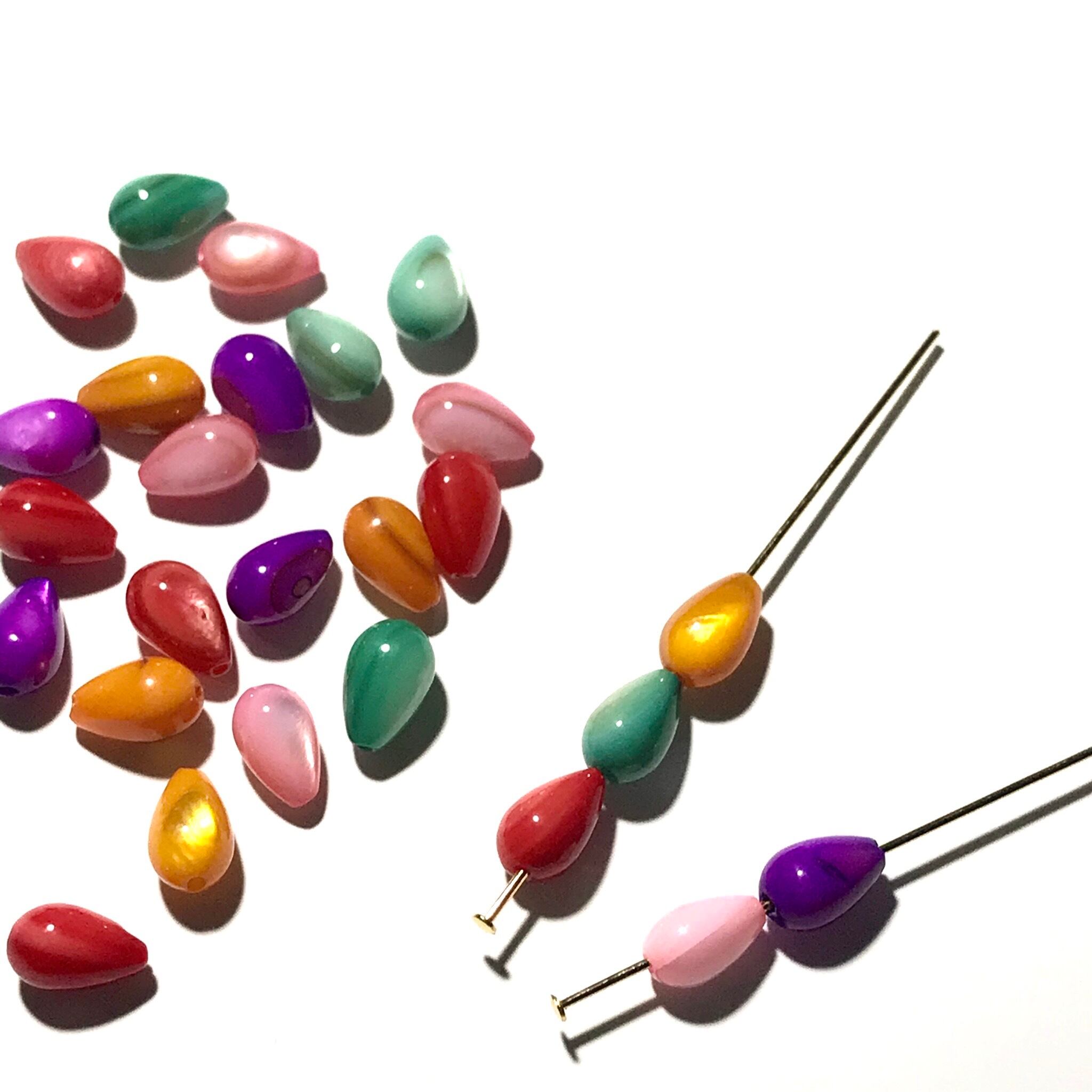 マザーオブパールという真珠の母貝から作られたシェルパールを使った小さなドロップ型の染めビーズになります。