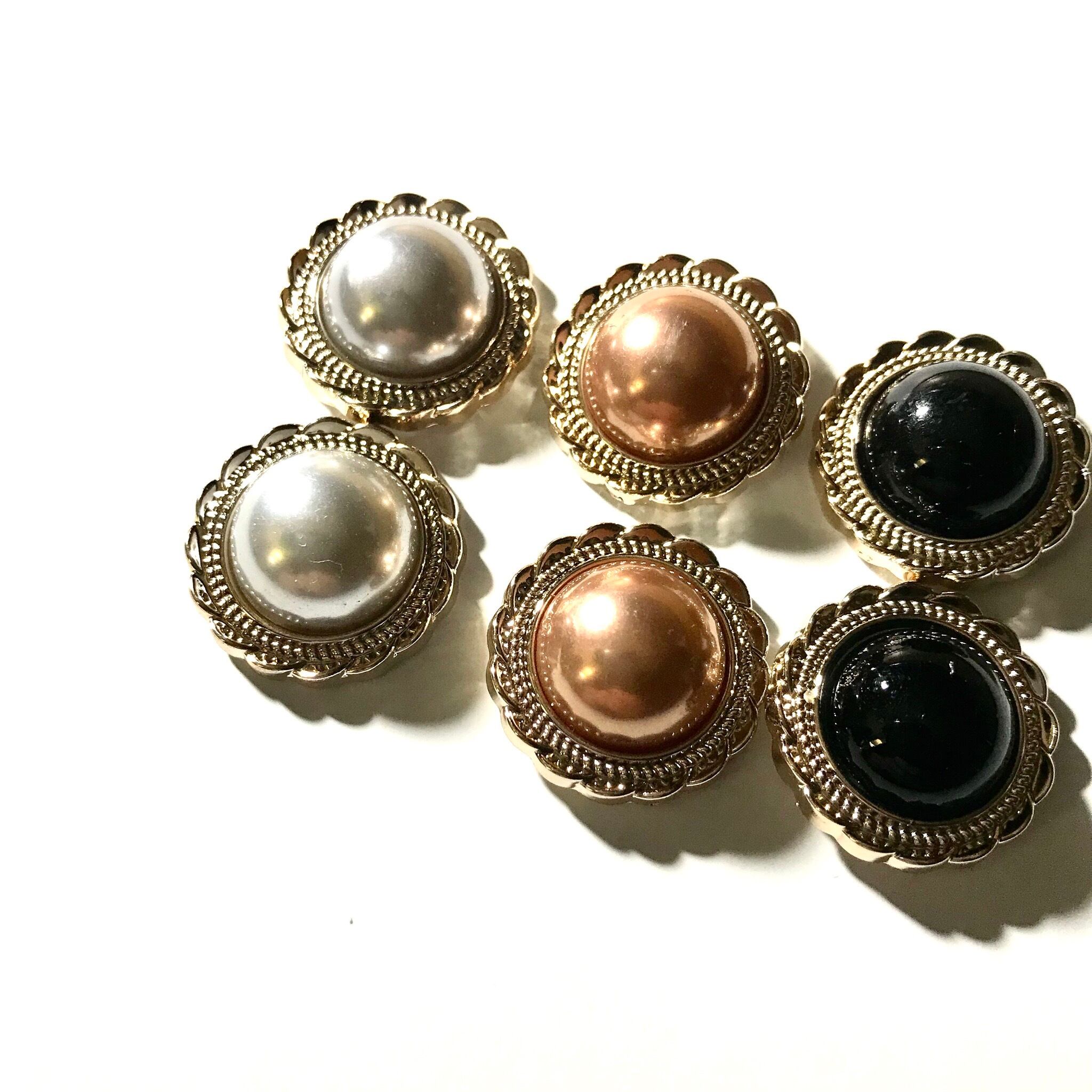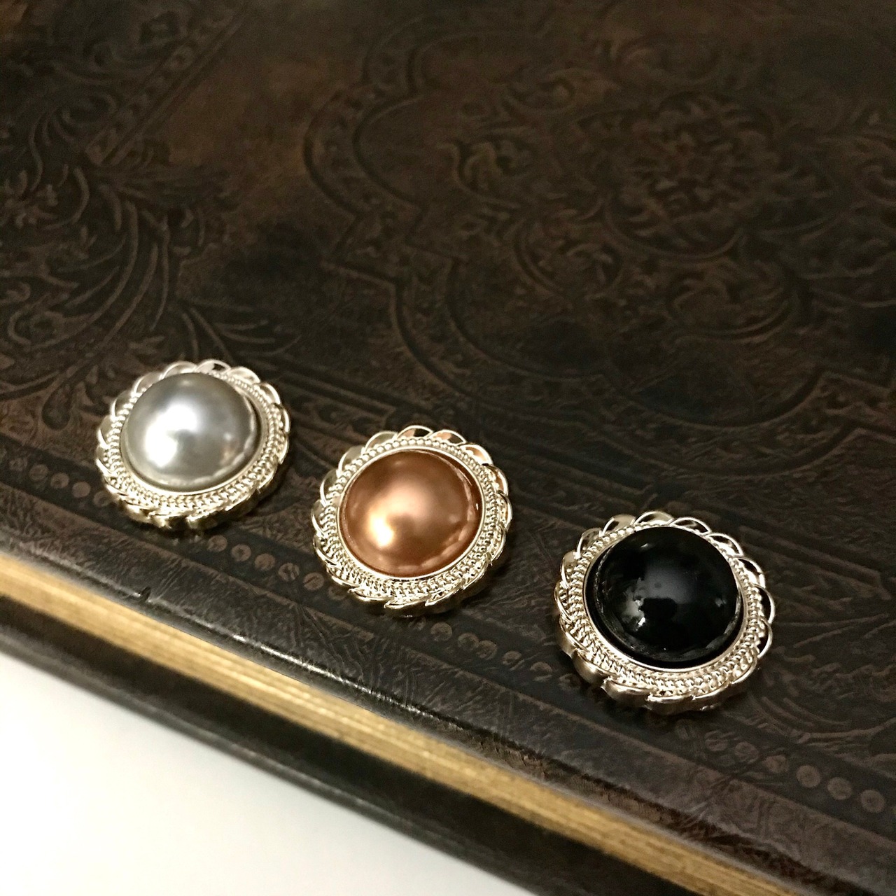 アンティークなデザインが可愛いライトゴールドカラーに3種類のパールカラーのカボションになります。