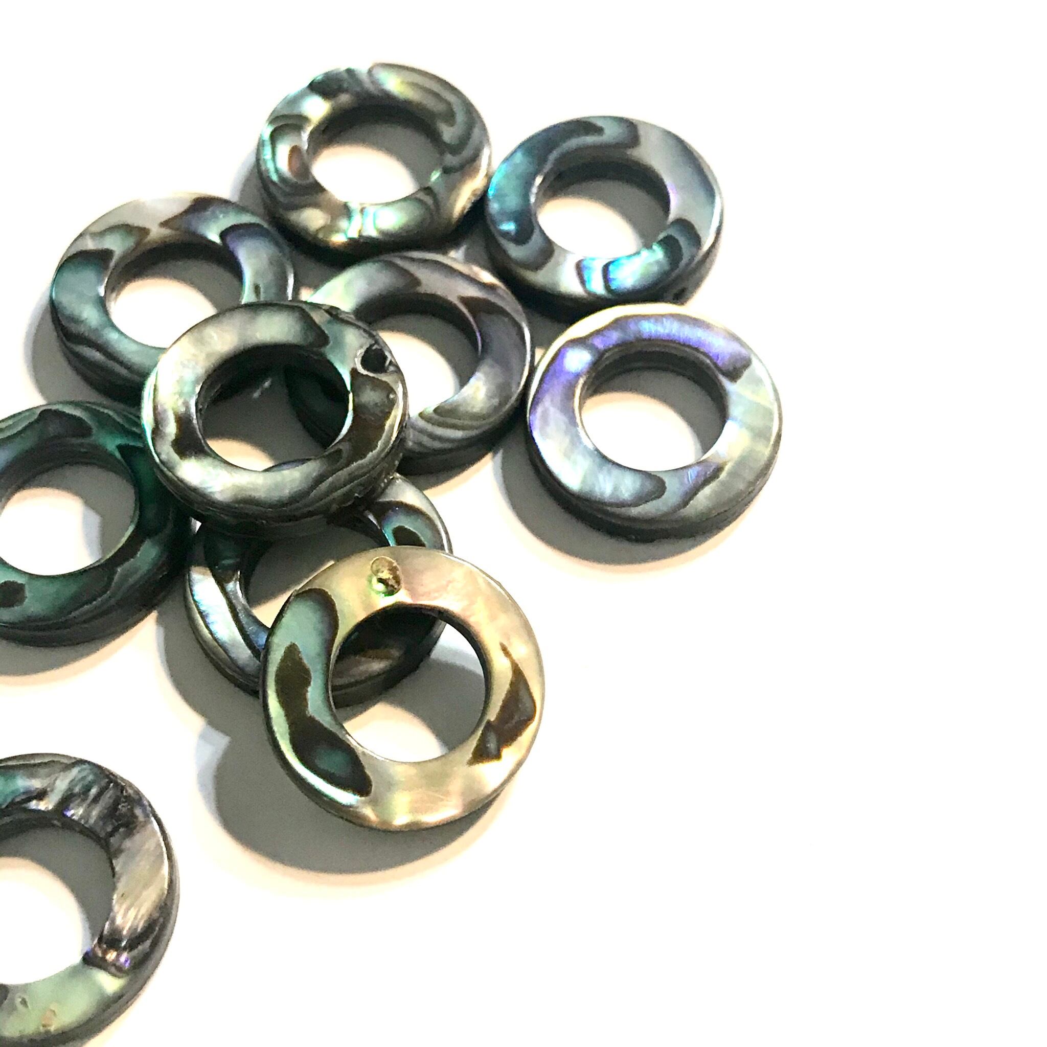 天然アバロンシェルサークル型貫通穴ビーズ J-03