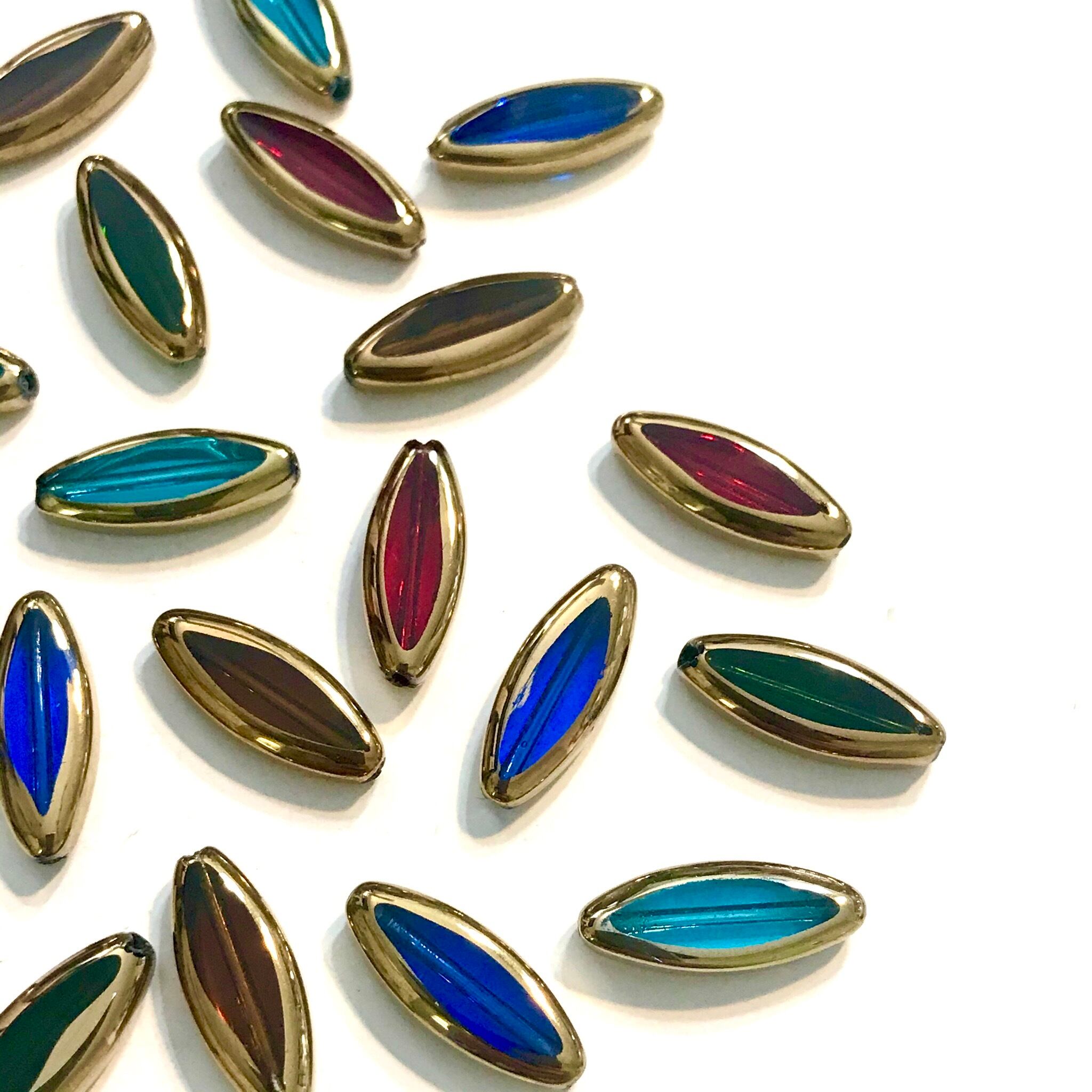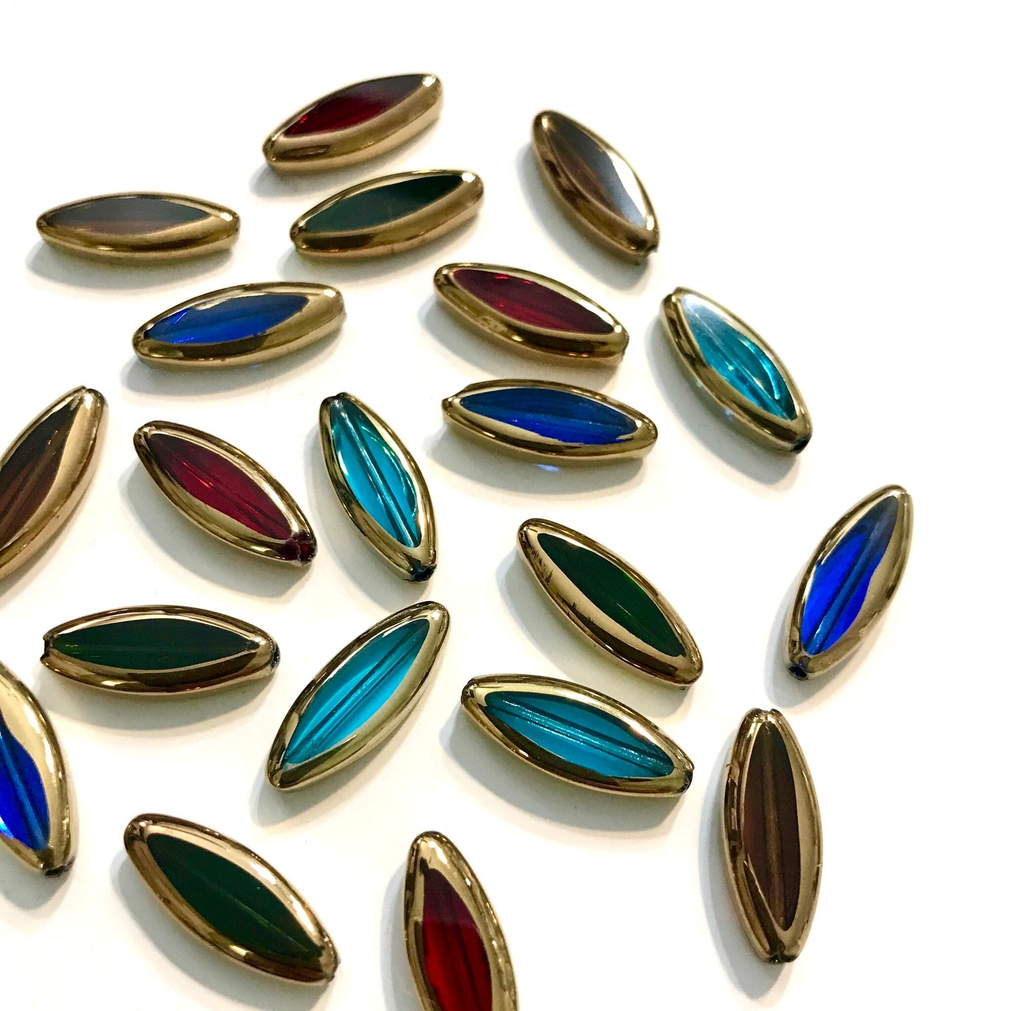 マーキス型のクリアガラスにゴールドエッジメッキ加工がされたヴィンテージスタイルのガラスビーズになります☆