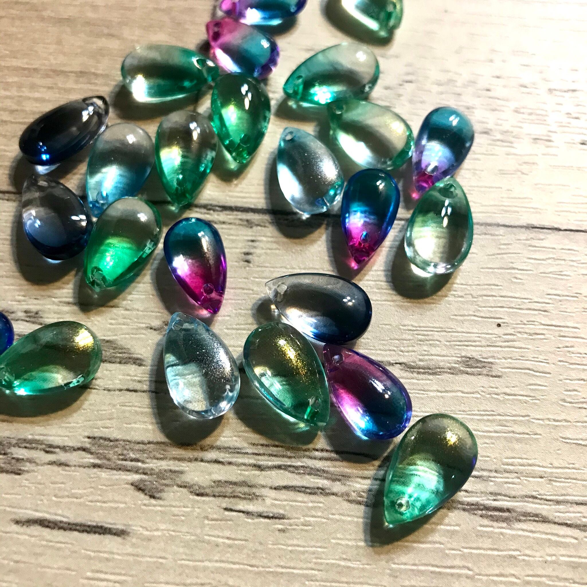 チェコガラスフラットドロップチャームグリーングラデーション B-100