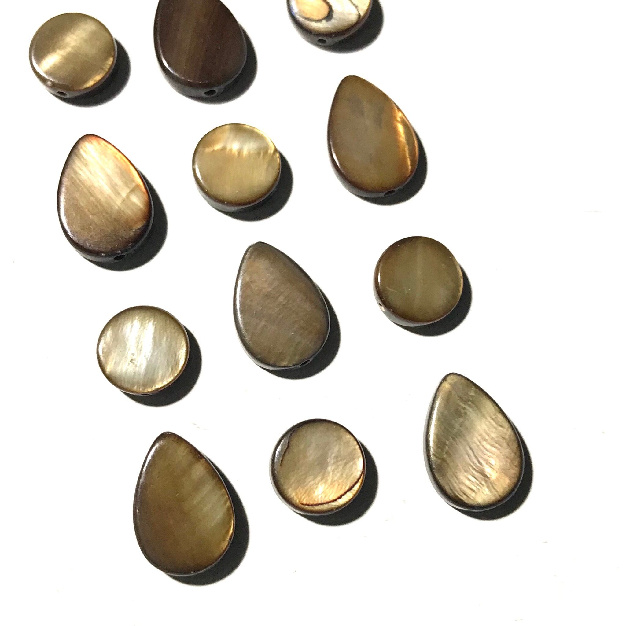 淡水シェルをそのまま加工&染めた天然素材パーツとなっております!①の方はコイン型の9mmのミニサイズ、②の方はドロップ型のダークブラウンとなっておりますd(゚ε゚*)