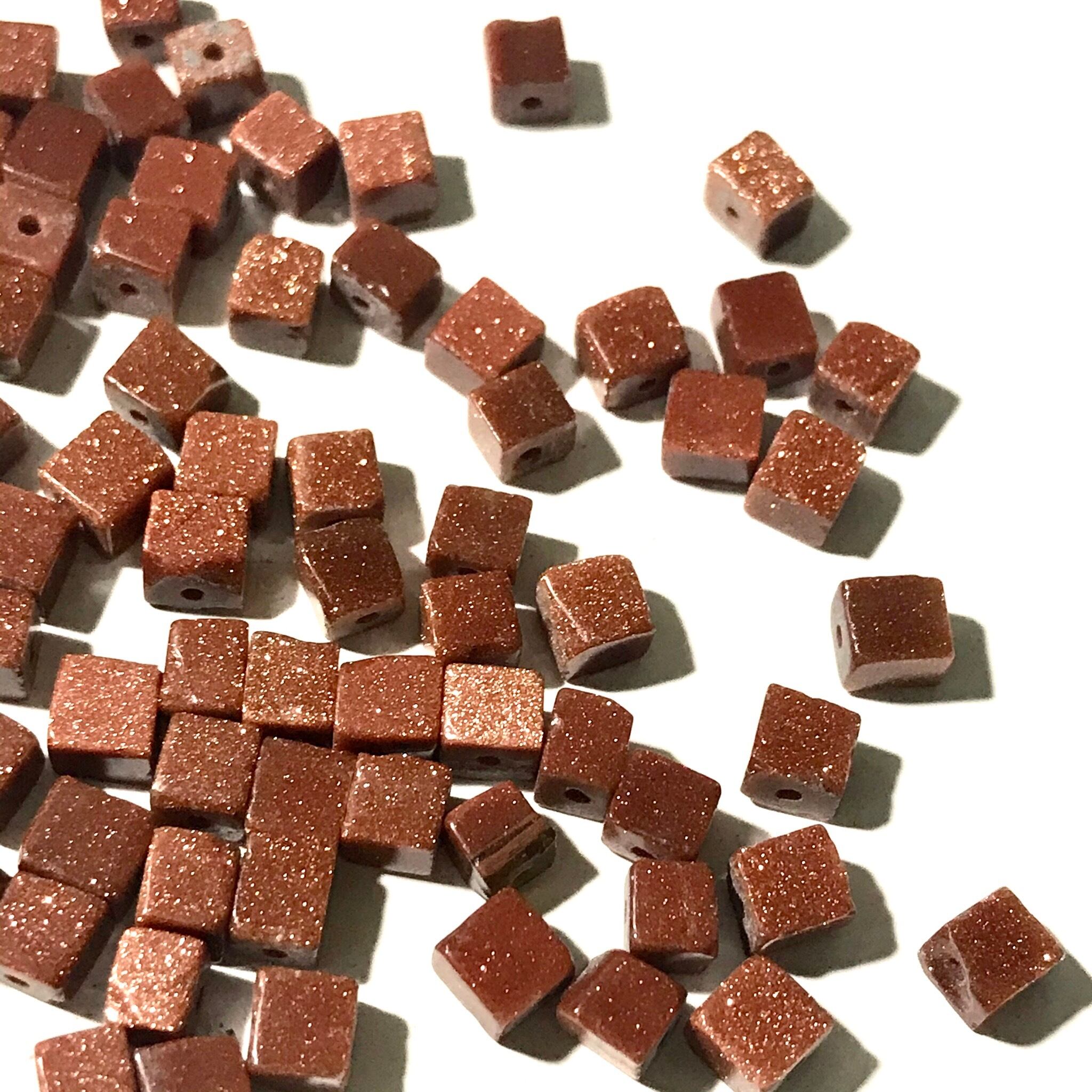 希少なブラウンゴールドストーンの小ぶりなスペーサーとしてもご使用頂けるキューブ型の天然石※ブラウンゴールドストーンは天然石に位置付けられていますが、ガラスと銅などの合成石になります。となっております。