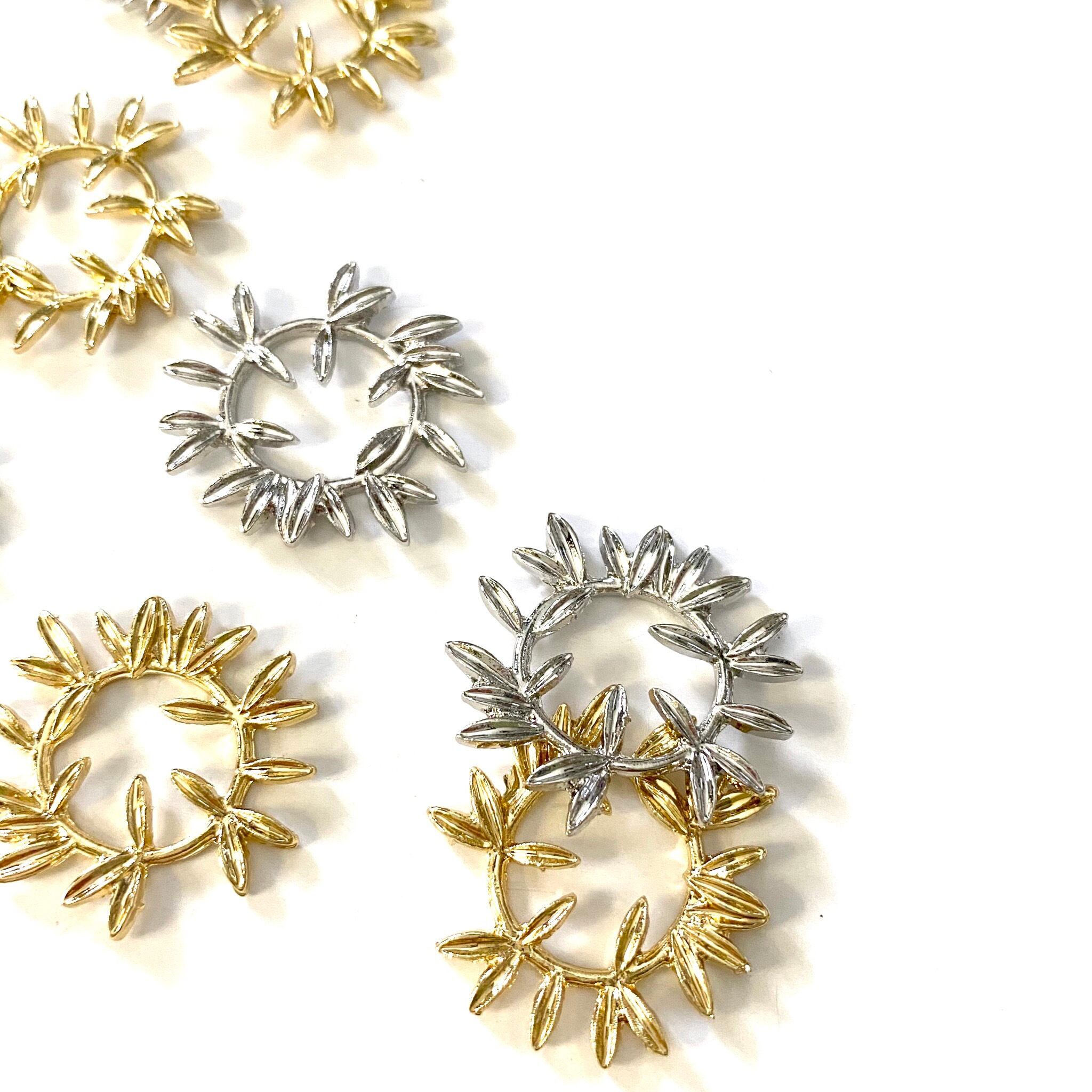 ピアス、ブレスレット、ネックレスなんでもOK!カンが無いのでスッキリしたデザイン!背面は丸型にフラットなので上級者の方なら中にレジンを流してレジンフレームとしてもご使用可能ですd(゚ε゚*)