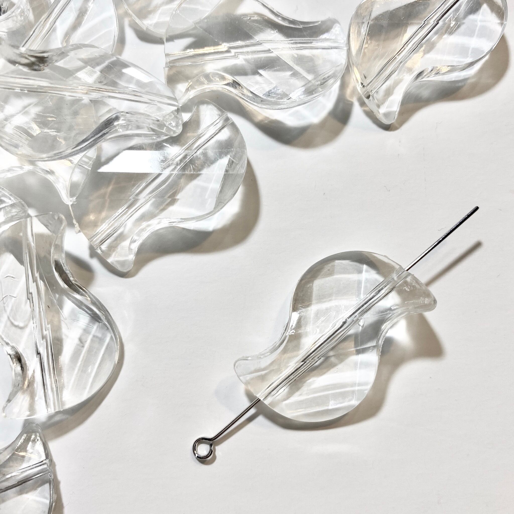 透明感のS字型のツイスト多面カットビーズとなっております☆インポート特有の個性的なデザインが魅力的です(´▽`)また、お洒落なデザインなのでクリアのままでも作品作りを楽しんで頂けるデザインとなっております。