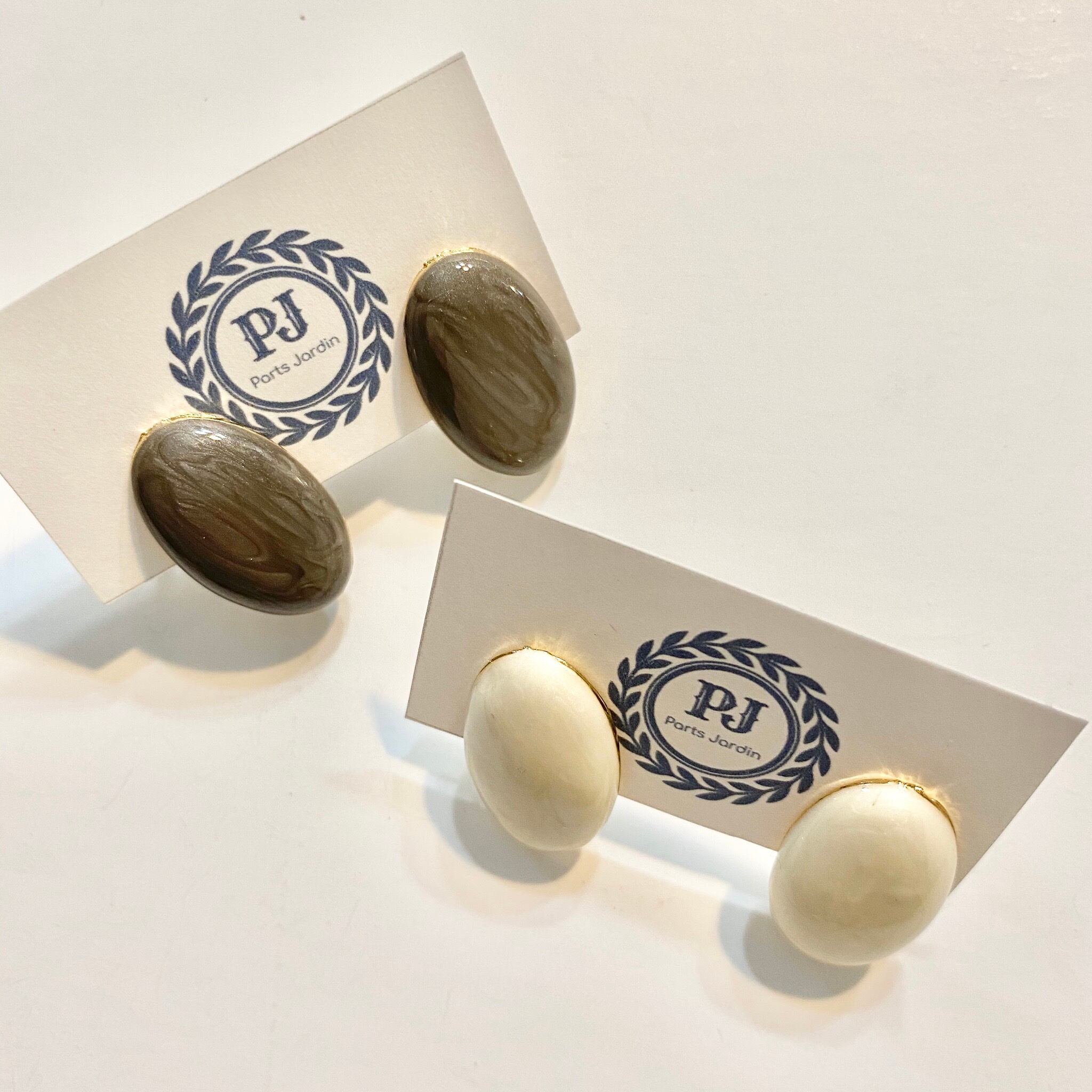 ほんのりメタリックなカラーの混ざったエポチャームのイヤリング金具です。