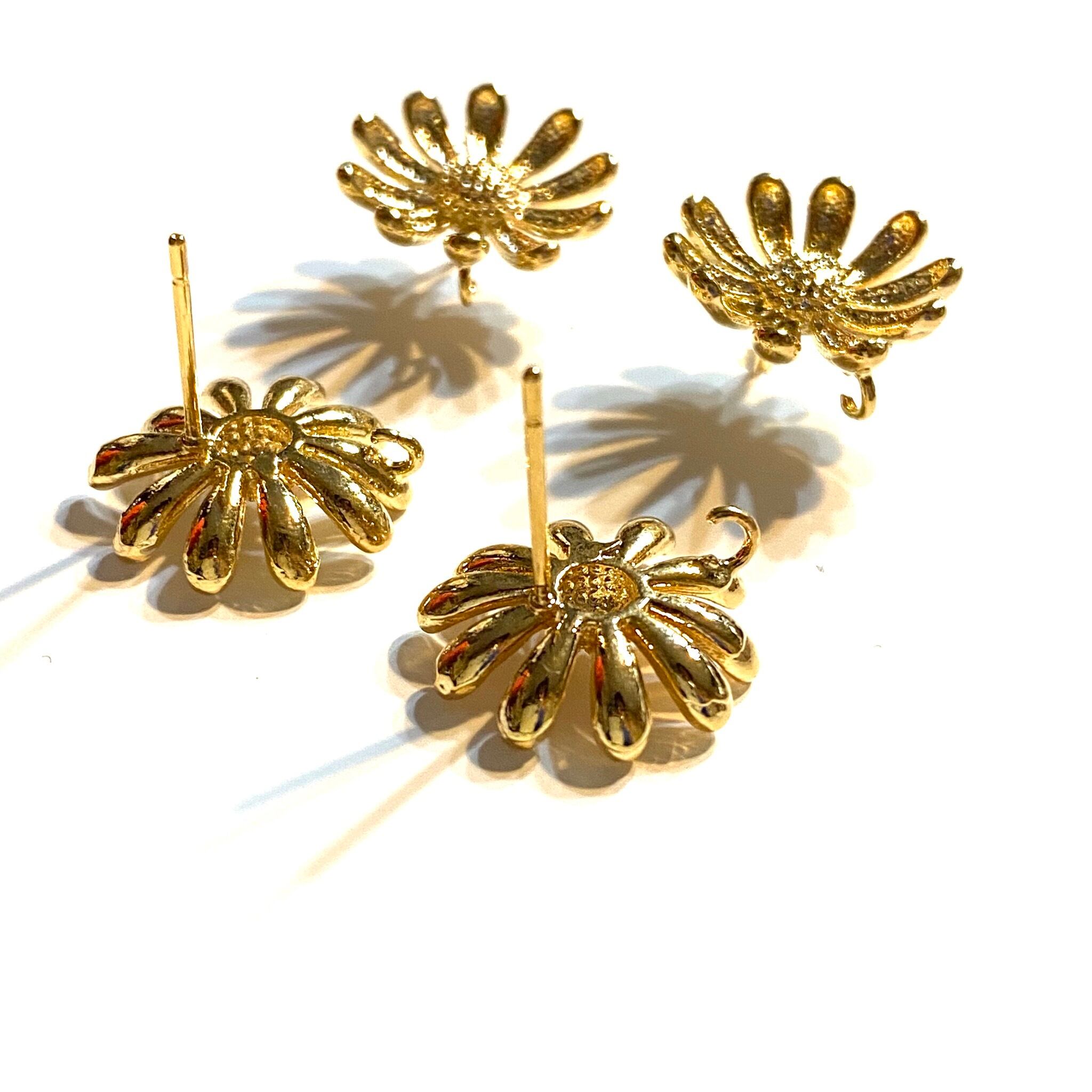 全体的にマット調の岩肌凹凸加工が施されており繊細なコスモスのようなお花のデザインが非常に高級感のあるデザインのポストピアスですd(゚ε゚*)