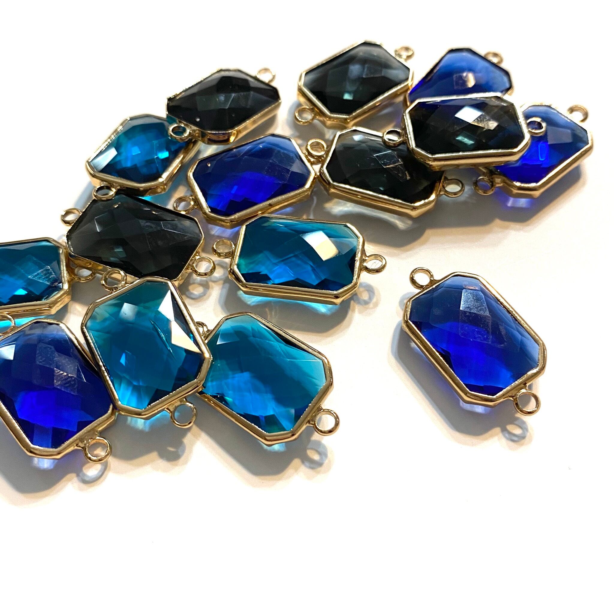 クリスタルガラスと呼ばれる最高品質のガラスを使用した多面カットレクタングル型のガラスストーンをメタルフレームにはめ込んだコネクタータイプのパーツです!スワロフスキーやバカラなどが愛用する素材クリスタルガラスを採用!非常に高い透明感と輝きがとってもエレガントですd(゚ε゚*)