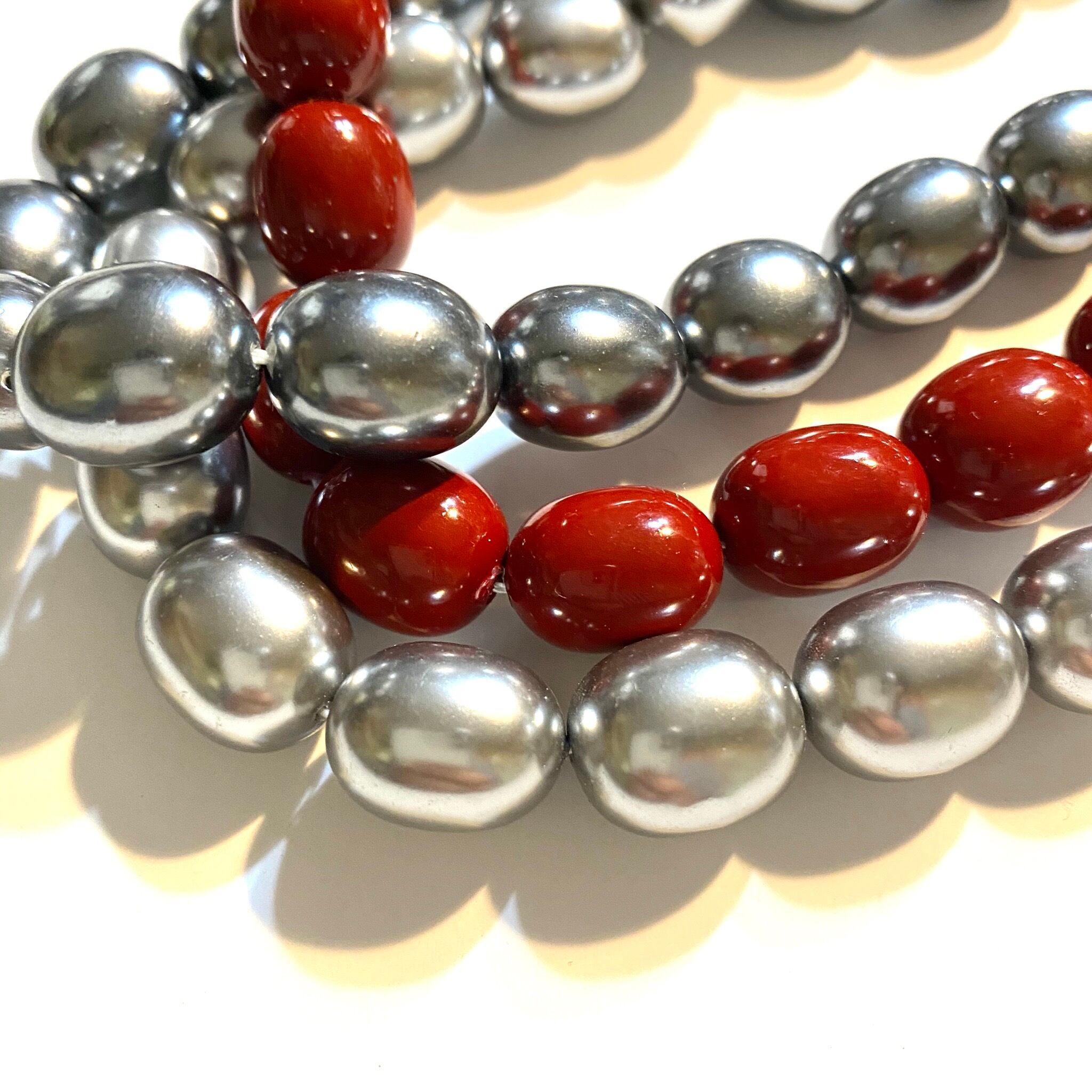 形状の美しいグレードAの淡水シェルパールビーズとなっておりますd(゚ε゚*)丸型ではなくオーバルの様な楕円形の形状になっており天然の形状とメタリックなカラーリングがとてもエレガントなアイテムとなっております!