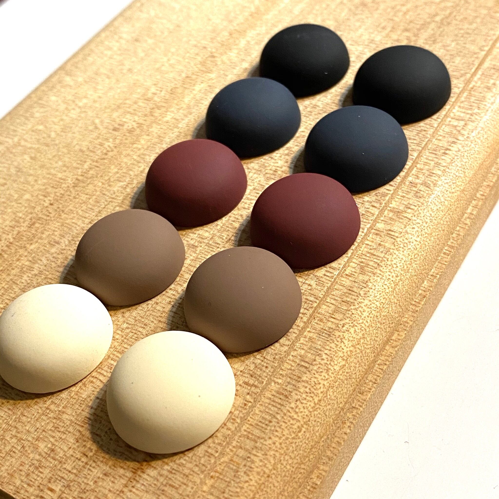半円のドーム型の樹脂の表面にラバー加工を施しマットな艶感でトレンド感満載なカボションです。