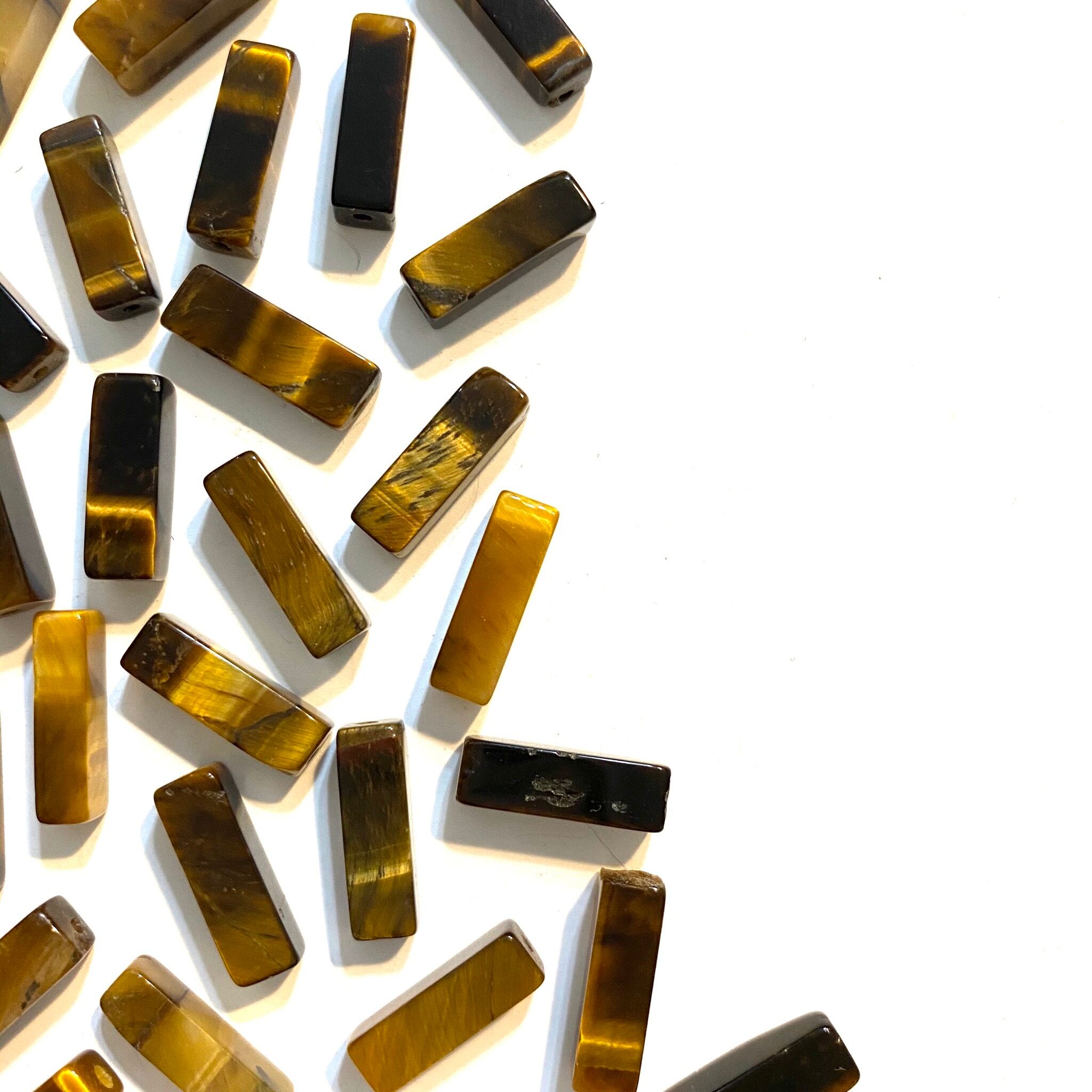 人気の天然石タイガーアイのスティック型ビーズ登場です!ダークブラウンベースにイエローオーカのような落ち着いたゴールド系カラーのコントラストが非常に美しい光沢のある天然石ですd(゚ε゚*)