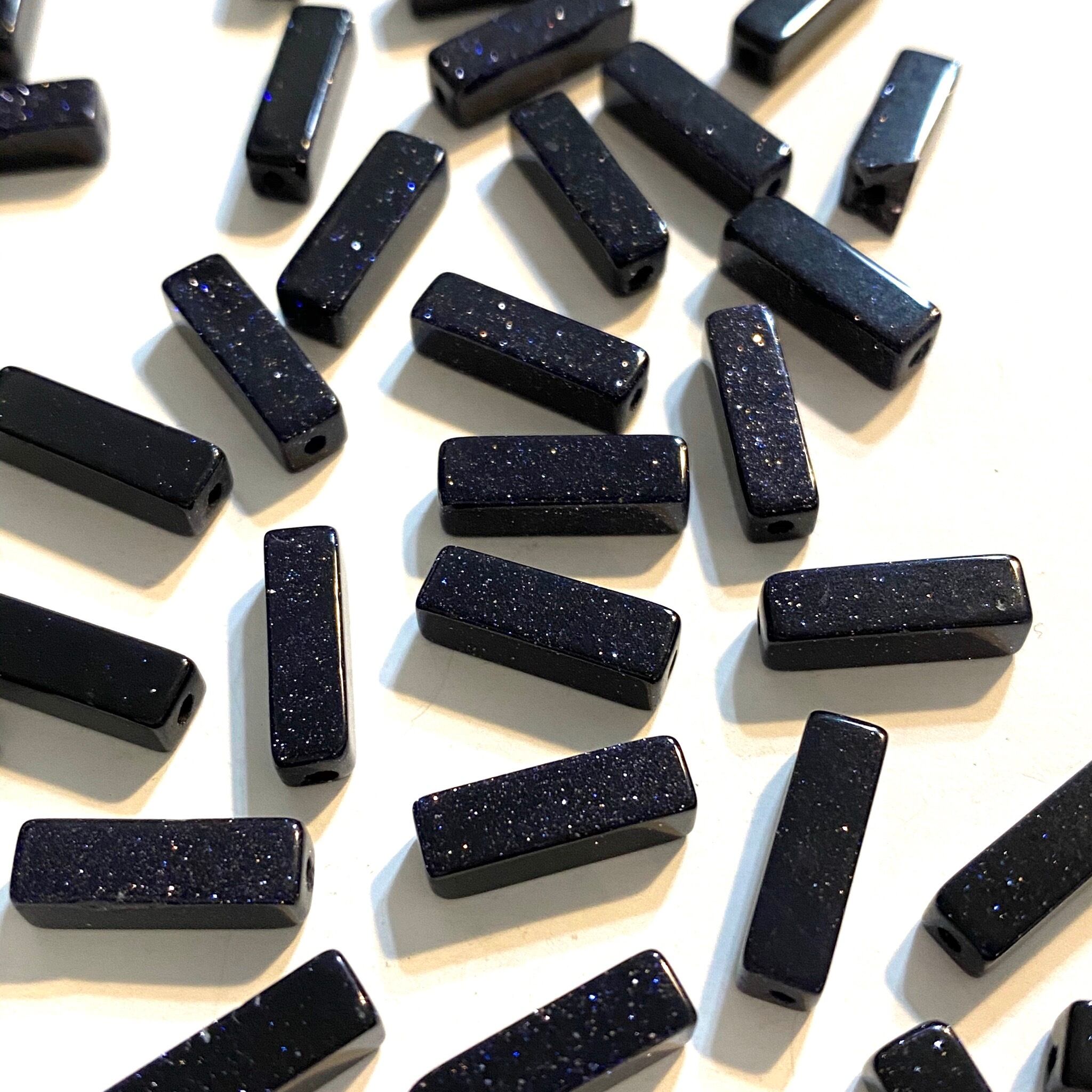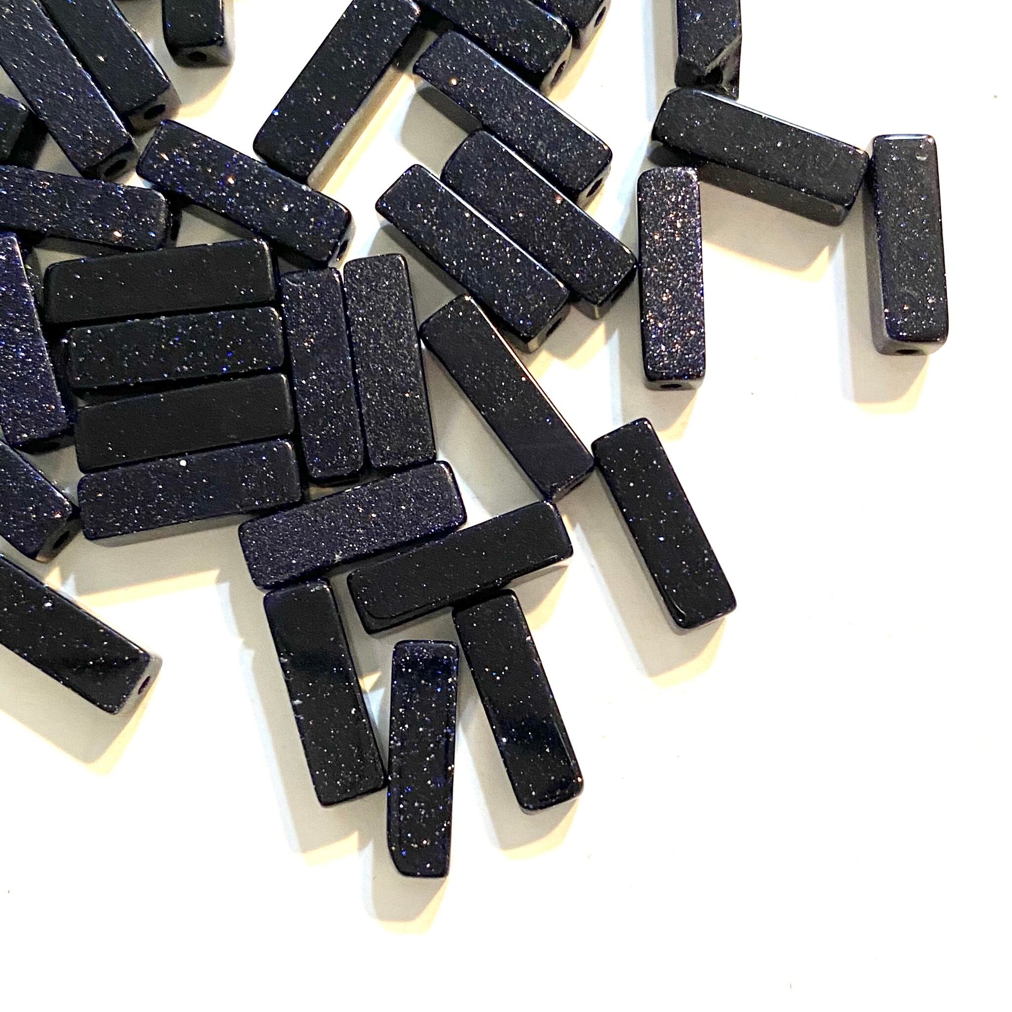 【ブルーゴールドストーン天然石スティック型ビーズ】