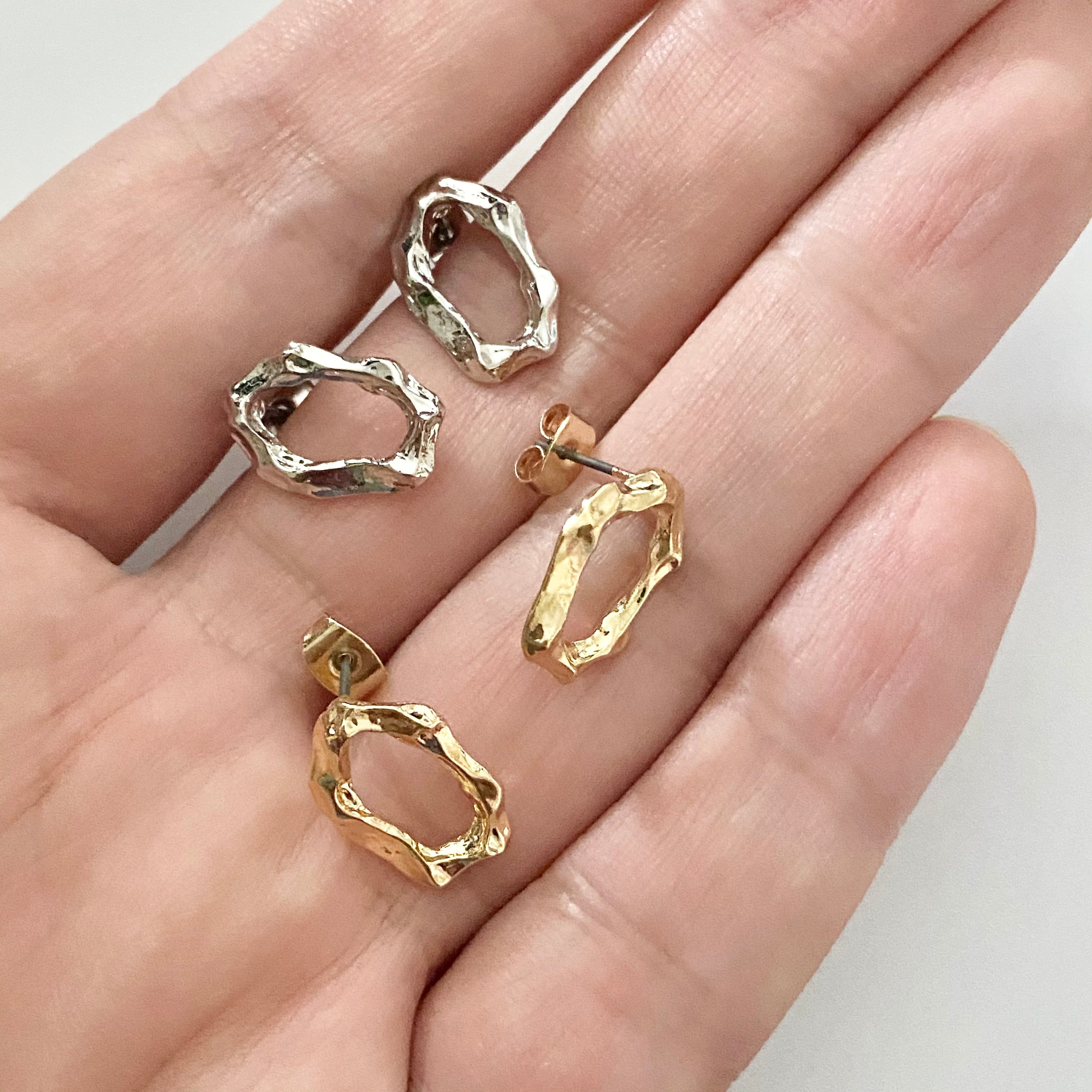 小ぶりなサイズ感×人気の不規則デザインのイチオシアイテムですd(゚ε゚*)主張し過ぎない絶妙なサイズ感にアレルギーのある人はもちろん!無い人にも安心なチタンポスト採用な点もオススメ!