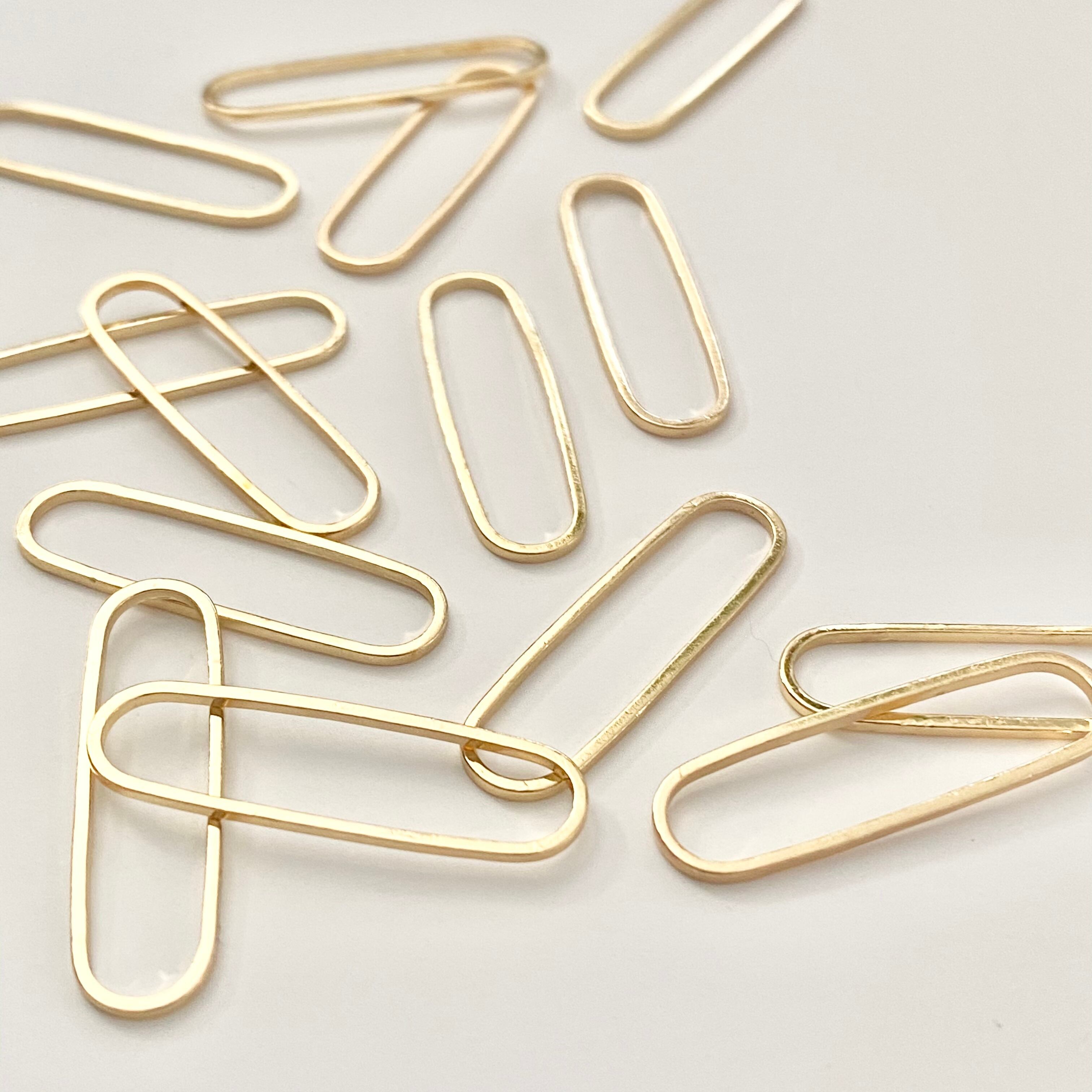 シンプルなロングオーバル型のメタルフレームです、華奢な線形なので繋げてチェーンの様にご使用頂いても可愛いかと思います。