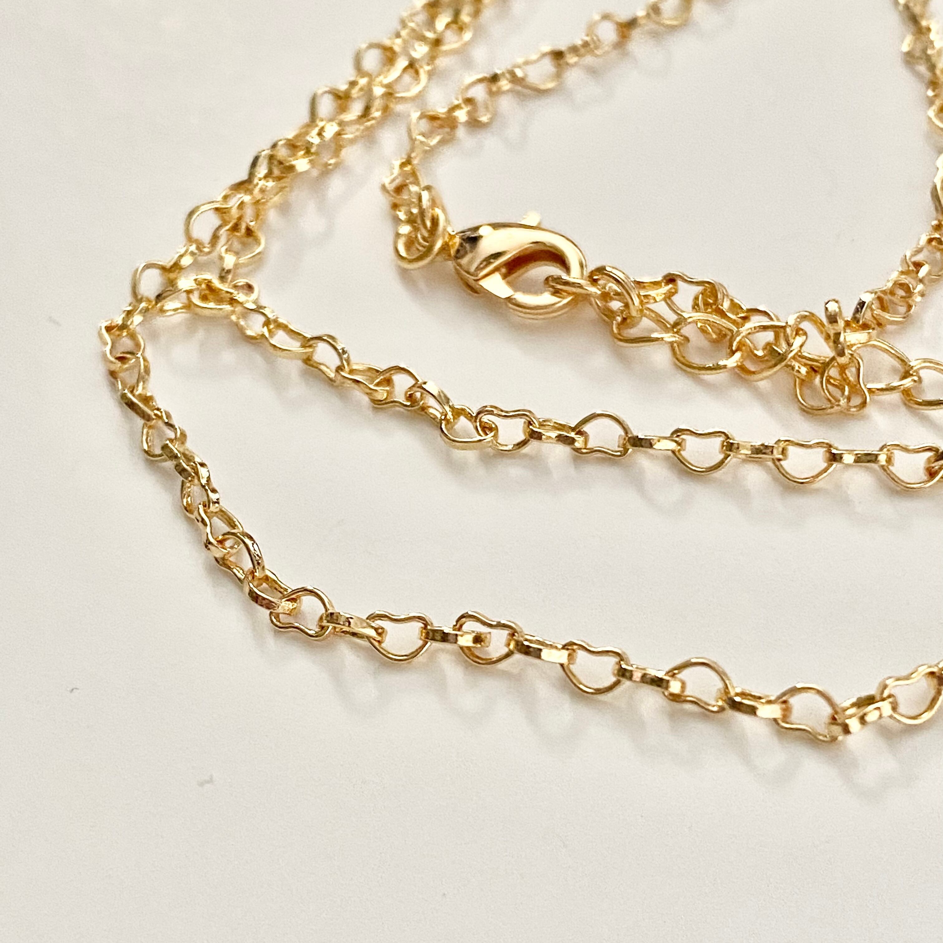 チェーン幅約2mmのハート型のコマになった可愛すぎないハートリンクチェーン!K18本金メッキで長期間美しいゴールドカラーを保ちますd(゚ε゚*)ワンランク上の作品作りに是非!