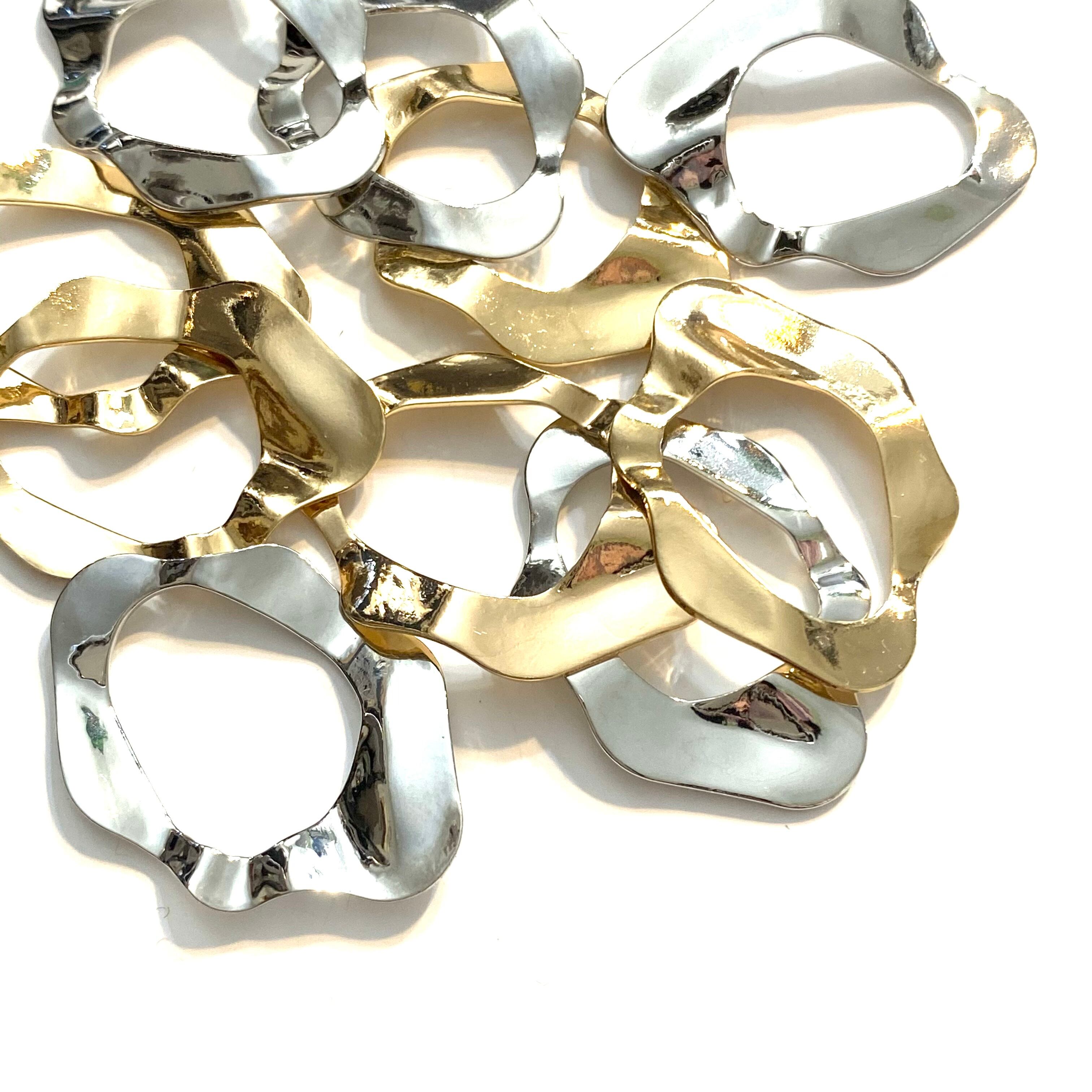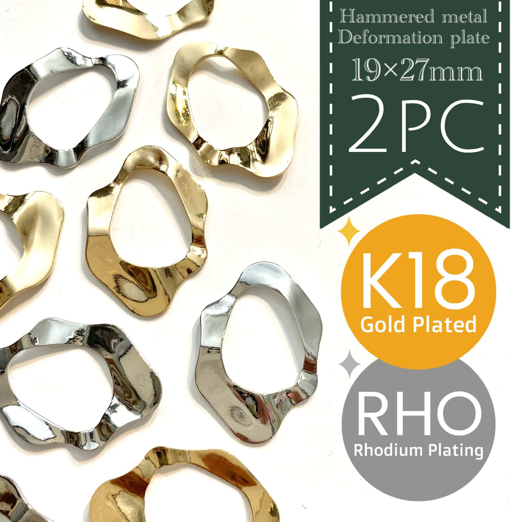 K18GP/本ロジウムメッキの高品質仕様&ハンマー打ち加工で凸凹の表面と歪な形状がとってもカジュアルな印象に仕上がる波型のメタルプレートパーツです!