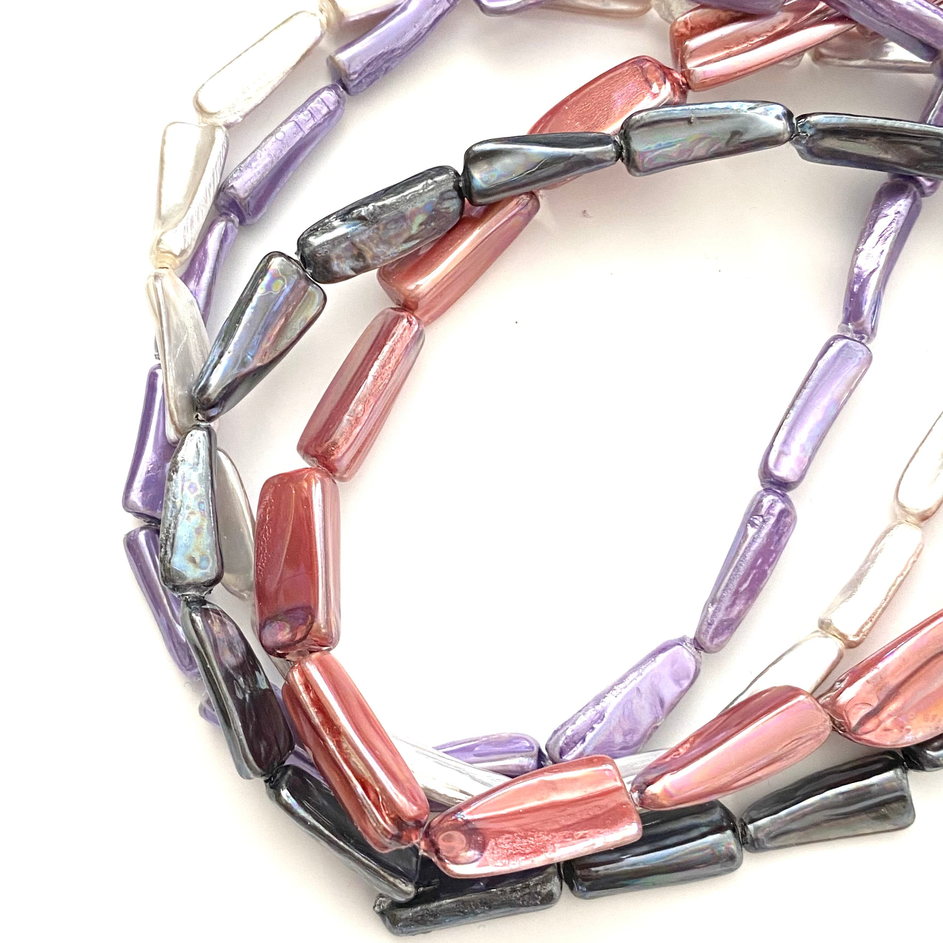 天然のシェルパールを染めたカジュアルな形状ながらエレガント系にまとまる万能ビーズ!