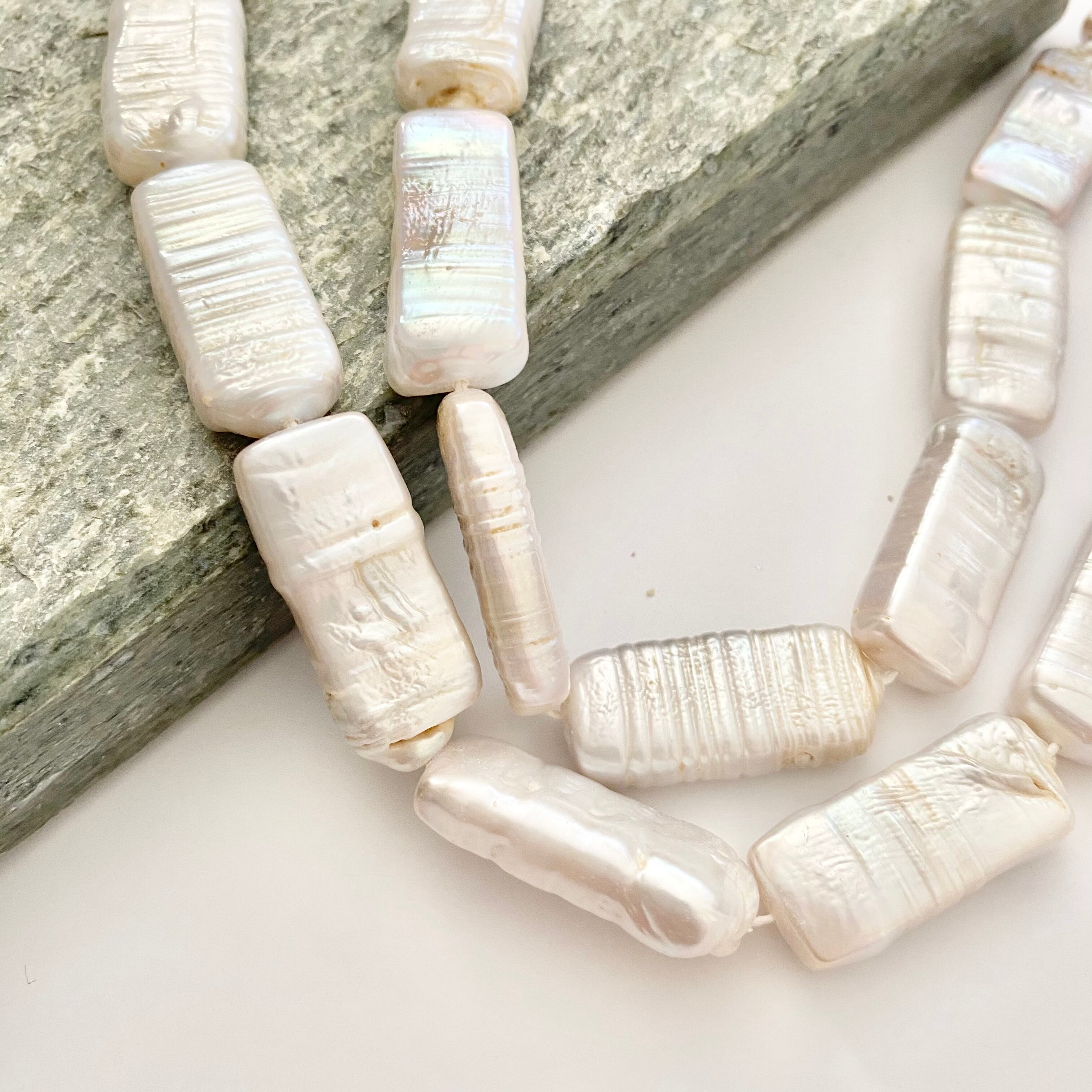 天然の希少&高級なケシパールのバータイプビーズですd(゚ε゚*)淡水パールよりも照りが強く鮮やかなオーロラに輝くケシパール!天然ならではの個性的な見た目がオンリーワンな作風に仕上がる事間違い無しd(゚ε゚*)