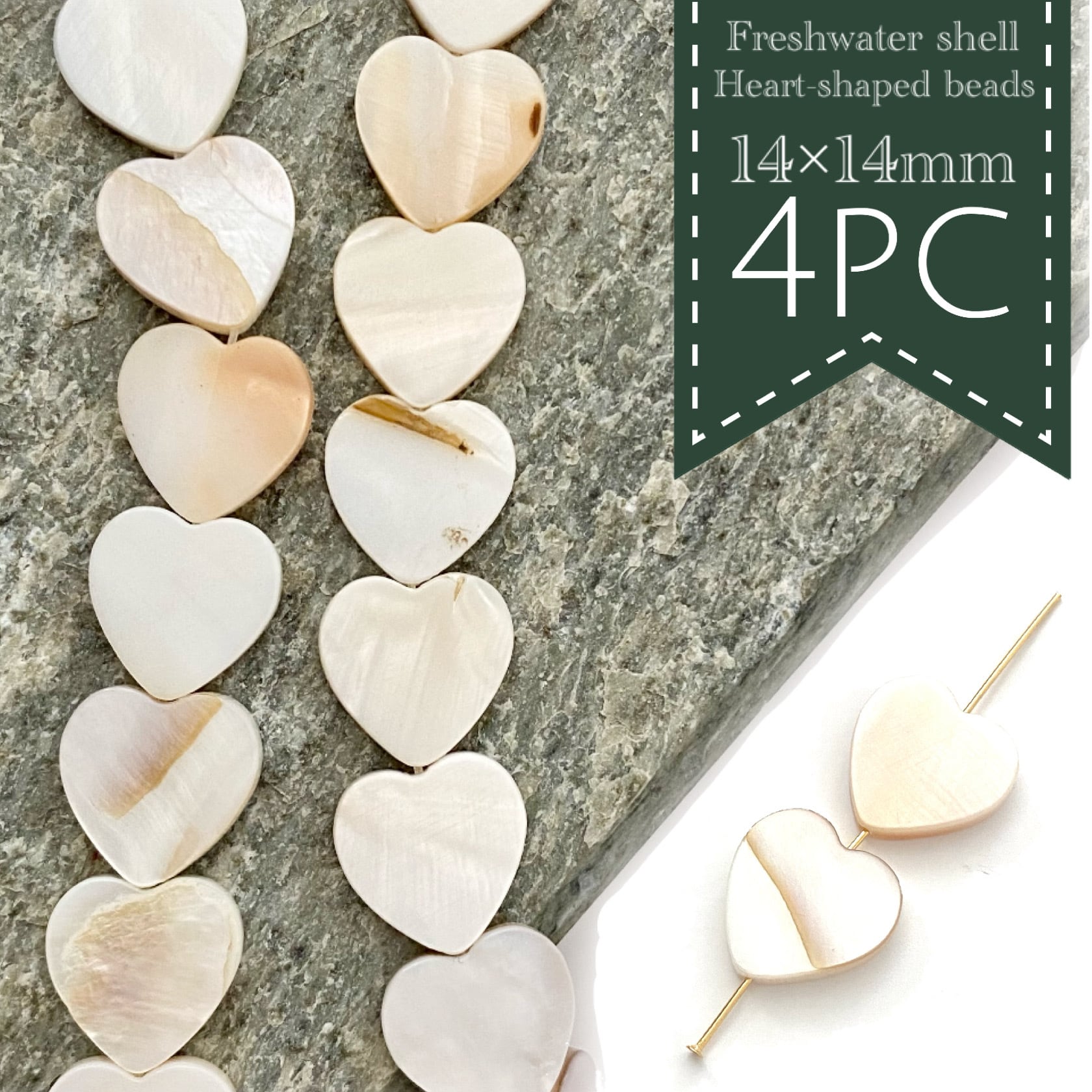 淡水シェルハート型ビーズナチュラル J-51