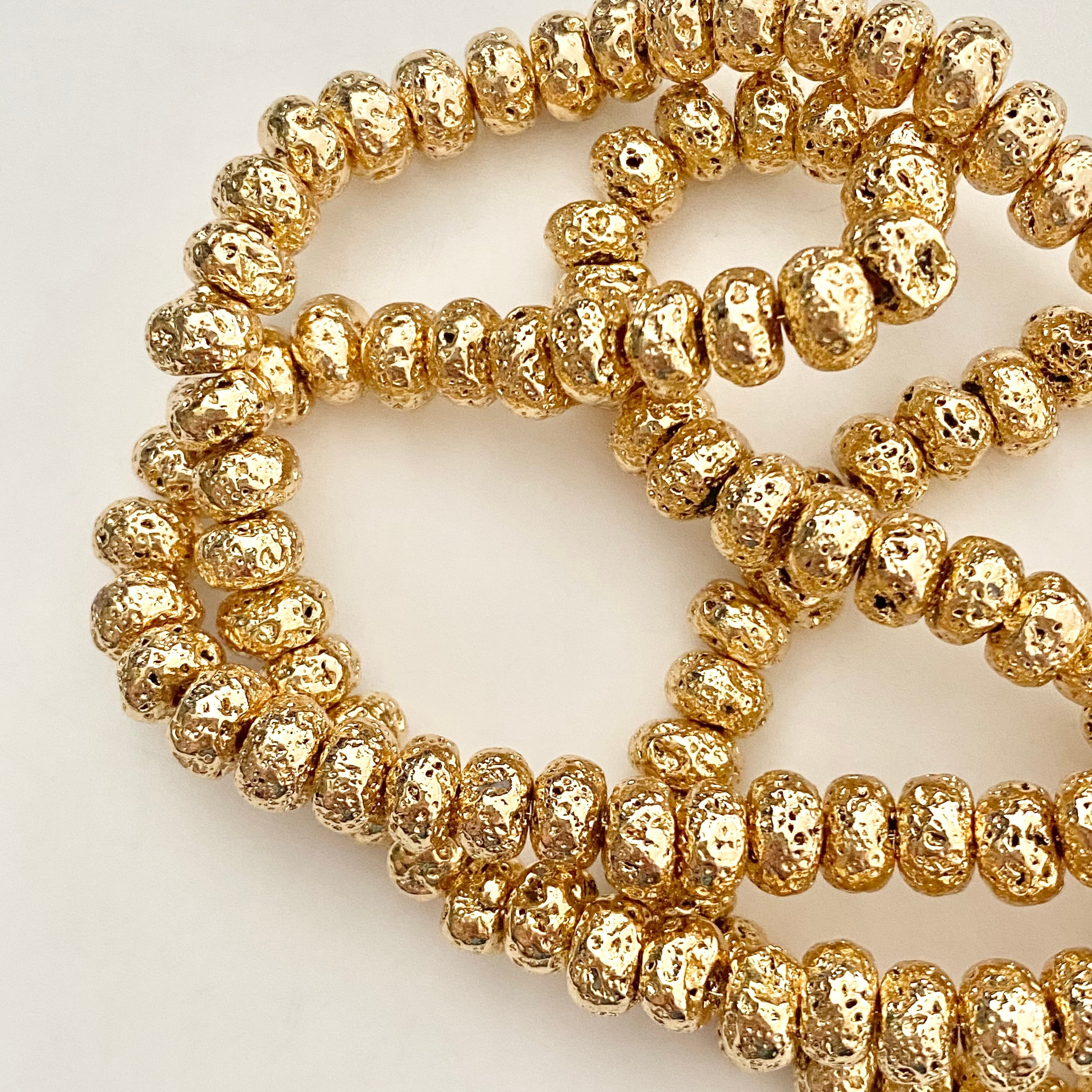 岩肌をそのまま生かしたナチュラルな印象の溶岩ビーズに高品質な18金メッキ加工でさらにエレガントな輝きをプラスしたアイテム!