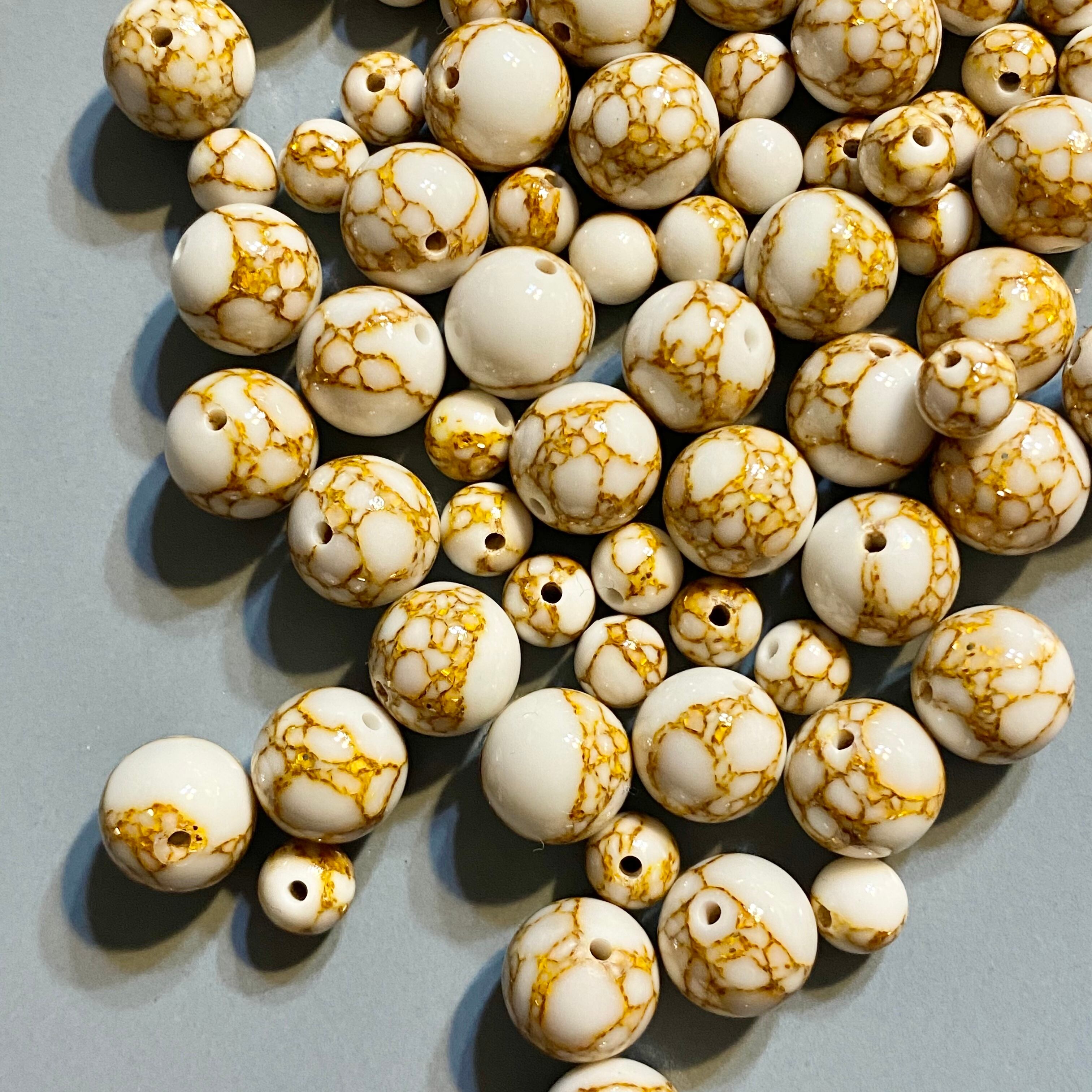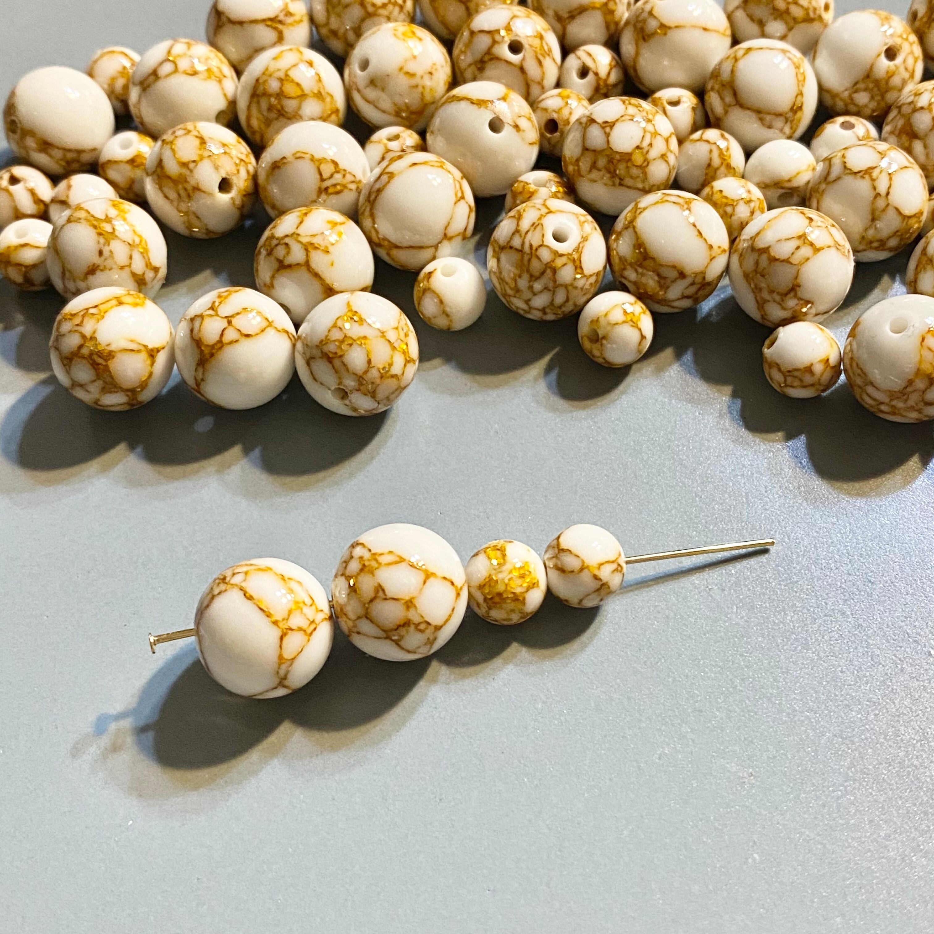 ホワイトベースにゴールドラインがランダムに入った珍しいカラーリングのトルコ石(ターコイズ)を2サイズご用意致しました!