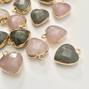 ラブラドライト/ローズクォーツ天然石多面カットハート型チャーム SE-13.14