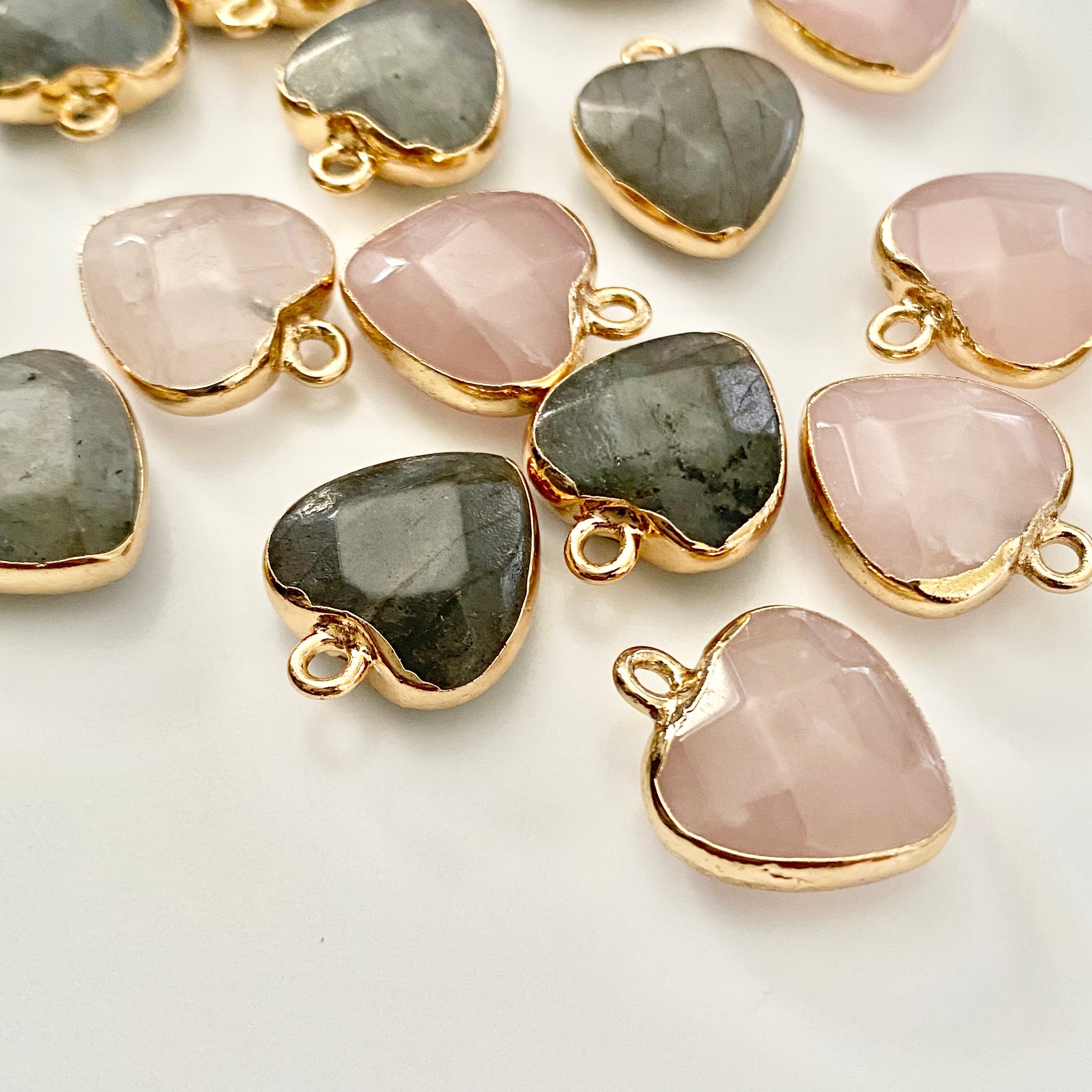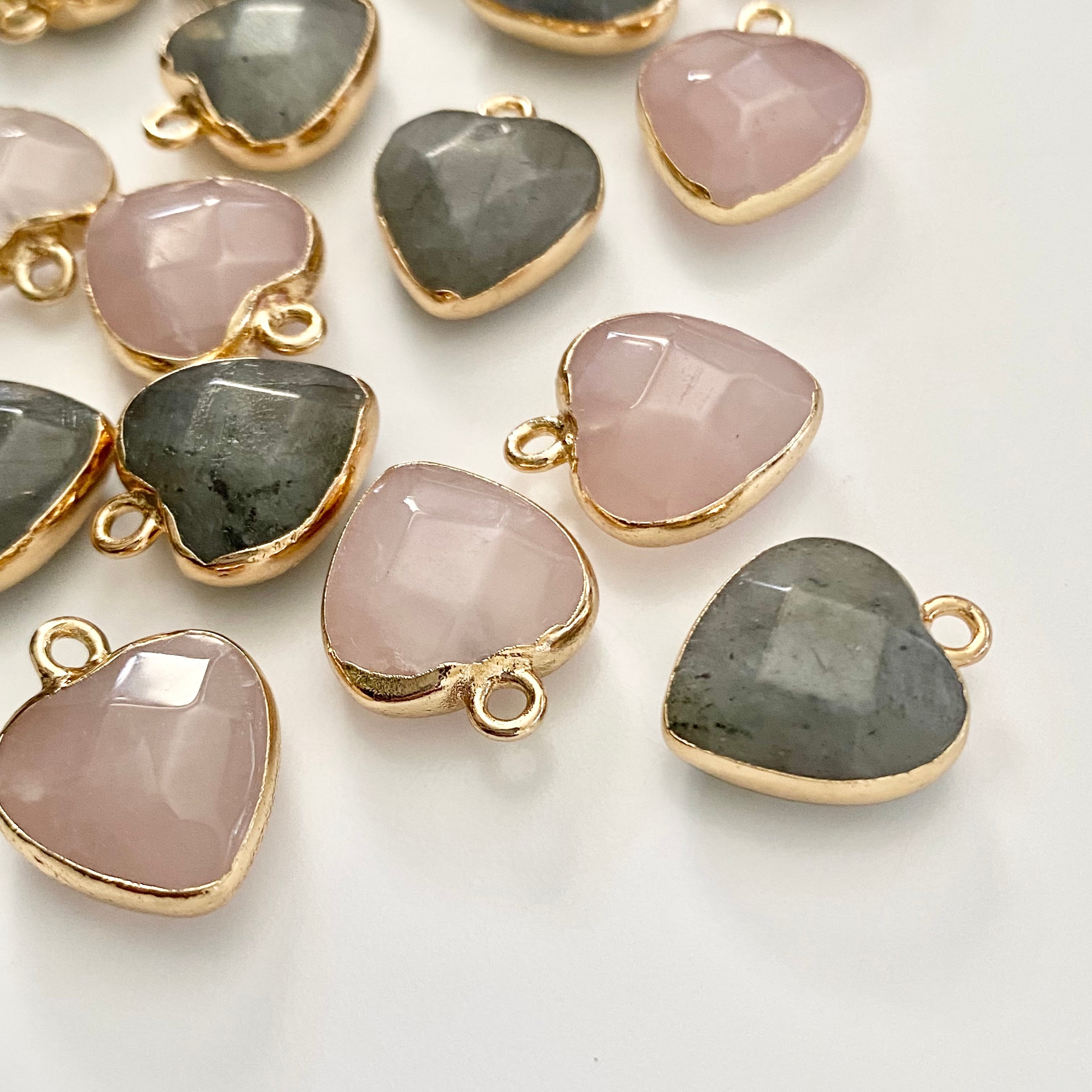 【検索ワード】ハンドメイド 資材 パーツ 高品質 アクセサリー ピアス ビーズ 天然石 ラブラドライト ローズクォーツ 多面カット ハート ハート型 チャーム